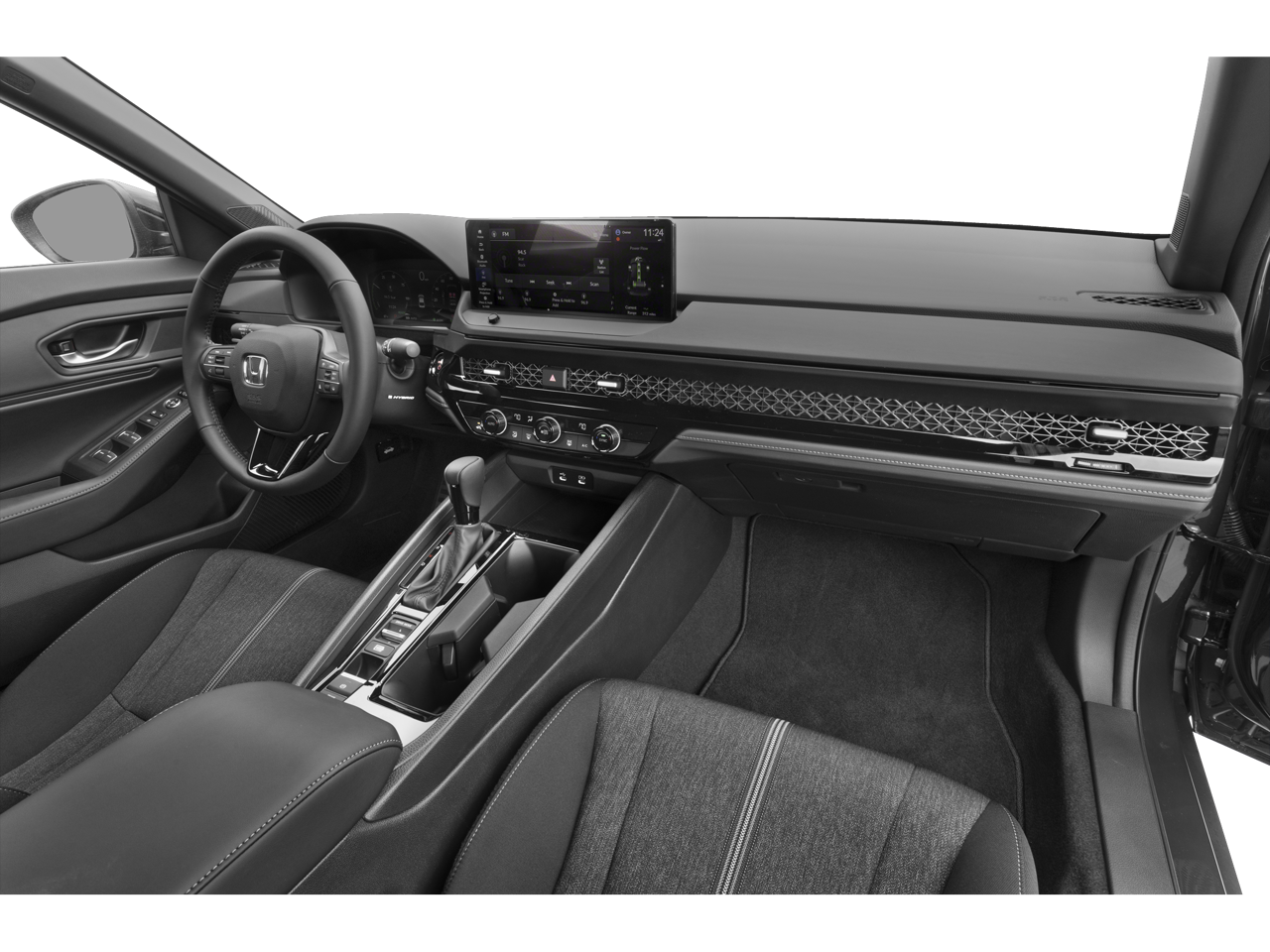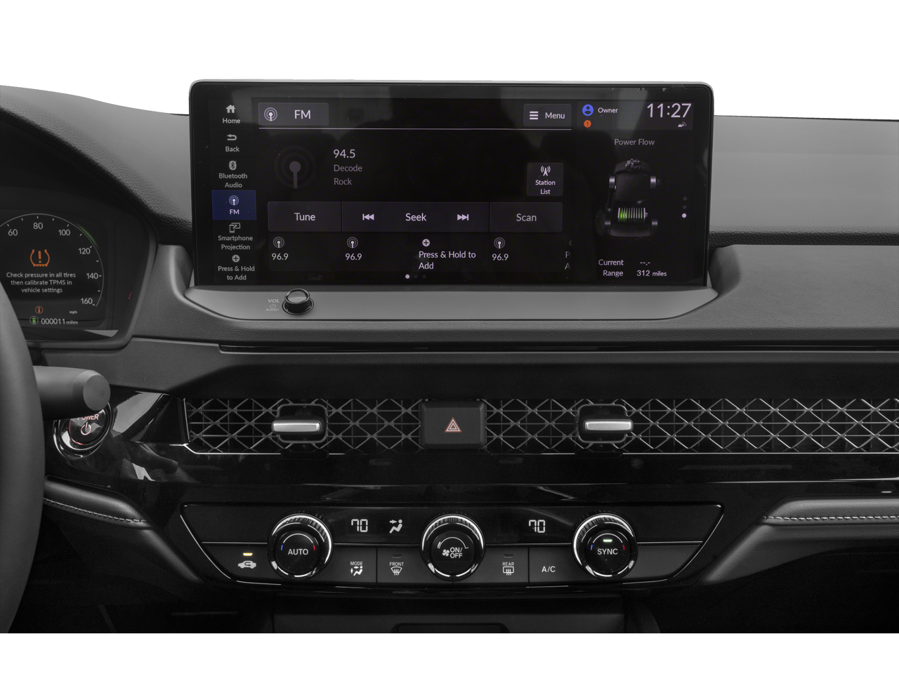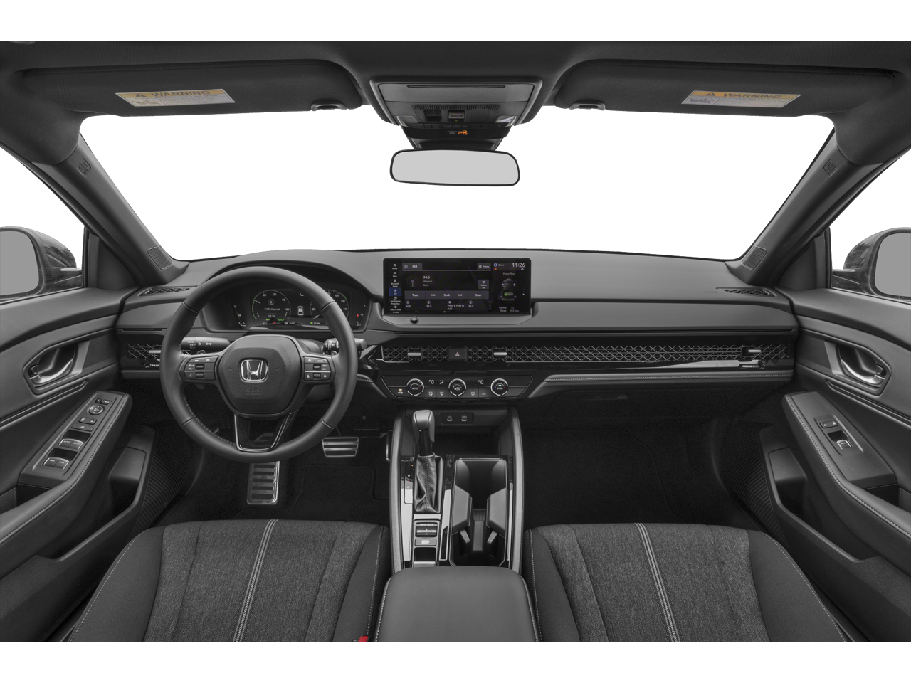 This 2025 Honda Accord Hybrid Sport in Urban Gray Pearl comes with the following features: 2.0L I4 DOHC 16V eCVT FWD 2.0L I4 DOHC 16V, 4-Wheel Disc Brakes, 8 Speakers, ABS brakes, Adaptive Cruise Control: Adaptive Cruise Control (ACC) with Low-Speed Follow, Air Conditioning, Alloy wheels, AM/FM radio, Apple CarPlay/Android Auto, Auto High-beam Headlights, Automatic temperature control, Blind Spot Information (BSI) System warning, Brake assist, Bumpers: body-color, Compass, Delay-off headlights, Driver door bin, Driver vanity mirror, Dual front impact airbags, Dual front side impact airbags, Electronic Stability Control, Emergency communication system: HondaLink, Exterior Parking Camera Rear, Fabric Seat Trim, Four wheel independent suspension, Front anti-roll bar, Front Bucket Seats, Front Center Armrest, Front dual zone A/C, Front reading lights, Fully automatic headlights, Heated Front Bucket Seats, Heated front seats, Illuminated entry, Knee airbag, Lane departure: Lane Keeping Assist System (LKAS) active, Leather Shift Knob, Leather steering wheel, Low tire pressure warning, Occupant sensing airbag, Outside temperature display, Overhead airbag, Overhead console, Panic alarm, Passenger door bin, Passenger vanity mirror, Power door mirrors, Power driver seat, Power moonroof, Power steering, Power windows, Radio data system, Radio: 180-Watt Audio System, Rear anti-roll bar, Rear reading lights, Rear seat center armrest, Rear side impact airbag, Rear window defroster, Remote keyless entry, Security system, Speed control, Speed-sensing steering, Speed-Sensitive Wipers, Split folding rear seat, Spoiler, Steering wheel mounted audio controls, Telescoping steering wheel, Tilt steering wheel, Traction control, Trip computer, Variably intermittent wipers, and Wheels: 19 x 8.5J Berlina Black. 46/41 City/Highway MPG