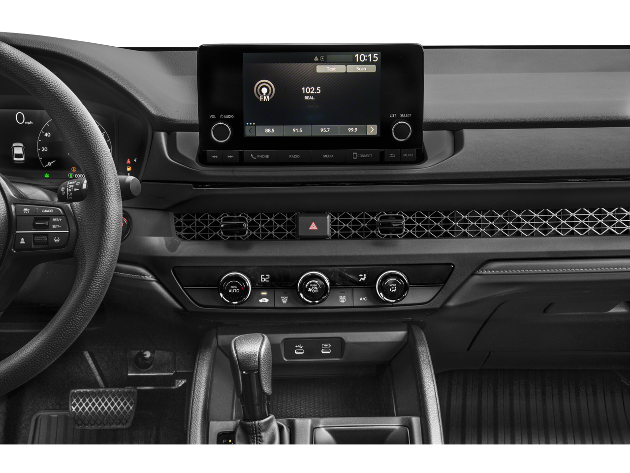 This 2025 Honda Accord LX in Platinum White Pearl comes with the following features: 1.5T I4 DOHC 16V Turbocharged VTEC CVT FWD Black Cloth, 4 Speakers, 4-Wheel Disc Brakes, ABS brakes, Adaptive Cruise Control: Adaptive Cruise Control (ACC) with Low-Speed Follow, Air Conditioning, Alloy wheels, AM/FM radio, Apple CarPlay/Android Auto, Auto High-beam Headlights, Automatic temperature control, Brake assist, Bumpers: body-color, Compass, Delay-off headlights, Driver door bin, Driver vanity mirror, Dual front impact airbags, Dual front side impact airbags, Electronic Stability Control, Emergency communication system: HondaLink Assist, Exterior Parking Camera Rear, Fabric Seat Trim, Four wheel independent suspension, Front anti-roll bar, Front Bucket Seats, Front Center Armrest, Front reading lights, Fully automatic headlights, Illuminated entry, Knee airbag, Lane departure: Lane Keeping Assist System (LKAS) active, Low tire pressure warning, Occupant sensing airbag, Outside temperature display, Overhead airbag, Overhead console, Panic alarm, Passenger door bin, Passenger vanity mirror, Power door mirrors, Power steering, Power windows, Radio data system, Radio: 160-Watt Audio System, Rear anti-roll bar, Rear reading lights, Rear seat center armrest, Rear side impact airbag, Rear window defroster, Remote keyless entry, Security system, Speed control, Speed-sensing steering, Speed-Sensitive Wipers, Steering wheel mounted audio controls, Tachometer, Telescoping steering wheel, Tilt steering wheel, Traction control, Trip computer, Variably intermittent wipers, and Wheels: 17 x 7.5J Blade Silver. 29/37 City/Highway MPG