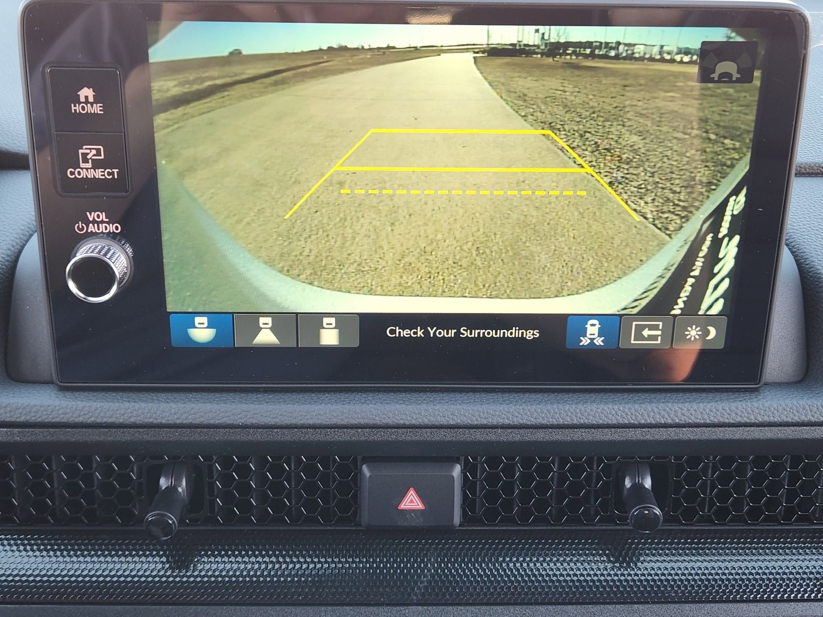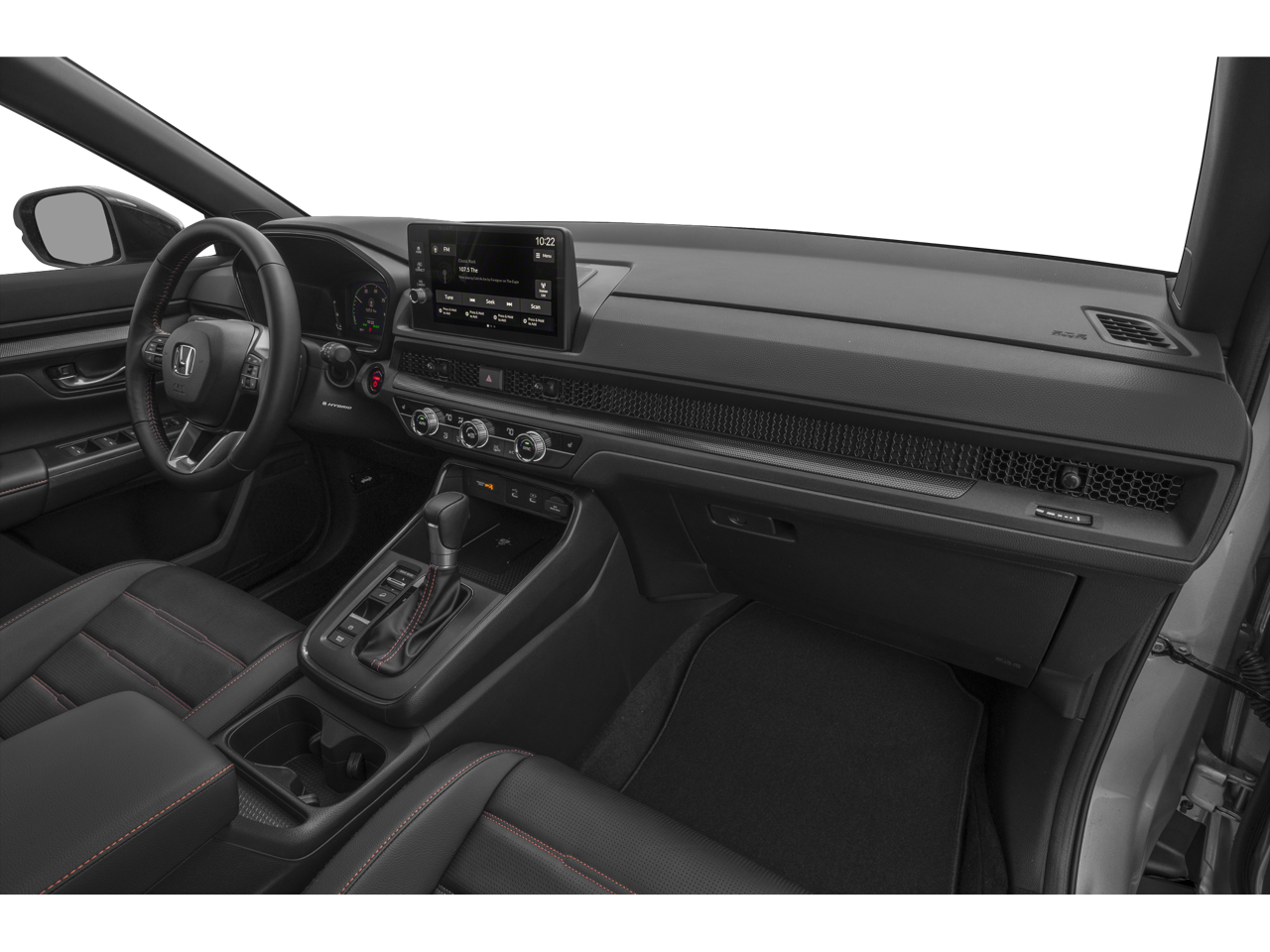 This 2026 Honda CR-V Hybrid Sport-L in Solar Silver Metallic comes with the following features: 2.0L I4 DOHC 16V eCVT AWD 2.0L I4 DOHC 16V, 4-Wheel Disc Brakes, 8 Speakers, ABS brakes, Adaptive Cruise Control: Adaptive Cruise Control (ACC) with Low-Speed Follow, Air Conditioning, Alloy wheels, AM/FM radio, Apple CarPlay/Android Auto, Auto High-beam Headlights, Auto-dimming Rear-View mirror, Automatic temperature control, Blind Spot Information (BSI) System warning, Brake assist, Bumpers: body-color, Compass, Delay-off headlights, Driver door bin, Driver vanity mirror, Dual front impact airbags, Dual front side impact airbags, Electronic Stability Control, Exterior Parking Camera Rear, Four wheel independent suspension, Front anti-roll bar, Front Bucket Seats, Front Center Armrest, Front dual zone A/C, Front reading lights, Fully automatic headlights, Heated door mirrors, Heated Front Bucket Seats, Heated front seats, Illuminated entry, Knee airbag, Leather Seat Trim, Leather Shift Knob, Leather steering wheel, Low tire pressure warning, Memory seat, Occupant sensing airbag, Outside temperature display, Overhead airbag, Overhead console, Panic alarm, Passenger door bin, Passenger vanity mirror, Power door mirrors, Power driver seat, Power Liftgate, Power moonroof, Power passenger seat, Power steering, Power windows, Radio data system, Radio: 320-Watt AM/FM Audio System, Rear anti-roll bar, Rear reading lights, Rear seat center armrest, Rear side impact airbag, Rear window defroster, Rear window wiper, Remote keyless entry, Security system, Speed control, Speed-sensing steering, Speed-Sensitive Wipers, Split folding rear seat, Spoiler, Steering wheel mounted audio controls, Telescoping steering wheel, Tilt steering wheel, Traction control, Trip computer, Turn signal indicator mirrors, Variably intermittent wipers, and Wheels: 18 Berlina Black. 40/34 City/Highway MPG