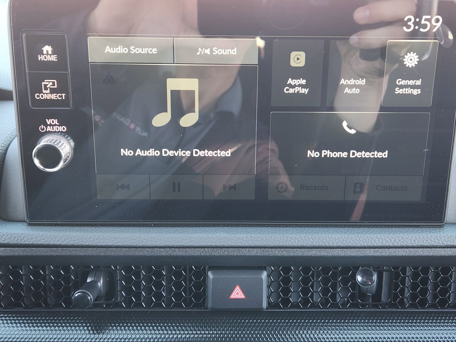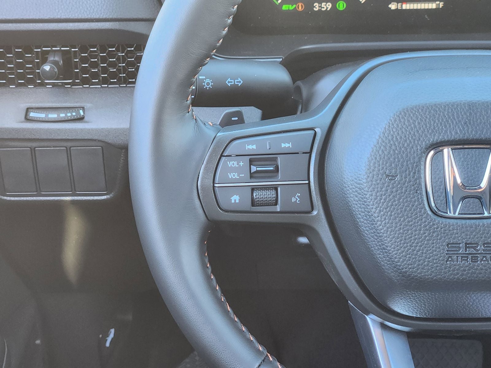 This 2026 Honda CR-V Hybrid Sport in Black comes with the following features: 2.0L I4 DOHC 16V eCVT FWD 2.0L I4 DOHC 16V, 4-Wheel Disc Brakes, 6 Speakers, ABS brakes, Adaptive Cruise Control: Adaptive Cruise Control (ACC) with Low-Speed Follow, Air Conditioning, Alloy wheels, AM/FM radio, Apple CarPlay/Android Auto, Auto High-beam Headlights, Automatic temperature control, Blind Spot Information (BSI) System warning, Brake assist, Bumpers: body-color, Cloth Seat Trim, Compass, Delay-off headlights, Driver door bin, Driver vanity mirror, Dual front impact airbags, Dual front side impact airbags, Electronic Stability Control, Exterior Parking Camera Rear, Four wheel independent suspension, Front anti-roll bar, Front Bucket Seats, Front Center Armrest, Front dual zone A/C, Front reading lights, Fully automatic headlights, Heated door mirrors, Heated Front Bucket Seats, Heated front seats, Illuminated entry, Knee airbag, Leather Shift Knob, Leather steering wheel, Low tire pressure warning, Occupant sensing airbag, Outside temperature display, Overhead airbag, Overhead console, Panic alarm, Passenger door bin, Passenger vanity mirror, Power door mirrors, Power driver seat, Power moonroof, Power steering, Power windows, Radio data system, Radio: 240-Watt AM/FM Audio System, Rear anti-roll bar, Rear reading lights, Rear seat center armrest, Rear side impact airbag, Rear window defroster, Rear window wiper, Remote keyless entry, Security system, Speed control, Speed-sensing steering, Speed-Sensitive Wipers, Split folding rear seat, Spoiler, Steering wheel mounted audio controls, Telescoping steering wheel, Tilt steering wheel, Traction control, Trip computer, Turn signal indicator mirrors, Variably intermittent wipers, and Wheels: 18 Berlina Black. 43/36 City/Highway MPG