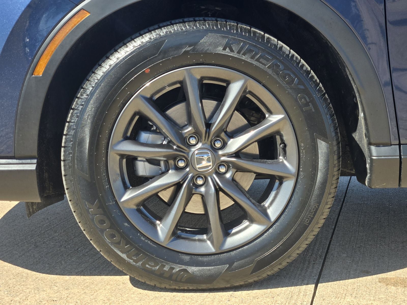 This 2026 Honda CR-V EX-L in Canyon River Blue Metallic comes with the following features: 1.5L I4 DOHC 16V CVT FWD 4-Wheel Disc Brakes, 8 Speakers, ABS brakes, Adaptive Cruise Control: Adaptive Cruise Control (ACC) with Low-Speed Follow, Air Conditioning, Alloy wheels, AM/FM radio, Apple CarPlay/Android Auto, Auto High-beam Headlights, Auto-dimming Rear-View mirror, Automatic temperature control, Blind Spot Information (BSI) System warning, Brake assist, Bumpers: body-color, Compass, Delay-off headlights, Driver door bin, Driver vanity mirror, Dual front impact airbags, Dual front side impact airbags, Electronic Stability Control, Exterior Parking Camera Rear, Four wheel independent suspension, Front anti-roll bar, Front Bucket Seats, Front Center Armrest, Front dual zone A/C, Front reading lights, Fully automatic headlights, Heated door mirrors, Heated Front Bucket Seats, Heated front seats, Illuminated entry, Knee airbag, Leather Seat Trim, Leather Shift Knob, Leather steering wheel, Low tire pressure warning, Memory seat, Occupant sensing airbag, Outside temperature display, Overhead airbag, Overhead console, Panic alarm, Passenger door bin, Passenger vanity mirror, Power door mirrors, Power driver seat, Power Liftgate, Power moonroof, Power passenger seat, Power steering, Power windows, Radio data system, Radio: 320-Watt AM/FM Audio System, Rear anti-roll bar, Rear reading lights, Rear seat center armrest, Rear side impact airbag, Rear window defroster, Rear window wiper, Remote keyless entry, Security system, Speed control, Speed-sensing steering, Speed-Sensitive Wipers, Split folding rear seat, Spoiler, Steering wheel mounted audio controls, Tachometer, Telescoping steering wheel, Tilt steering wheel, Traction control, Trip computer, Turn signal indicator mirrors, Variably intermittent wipers, and Wheels: 18 Shark Grey. 28/33 City/Highway MPG
