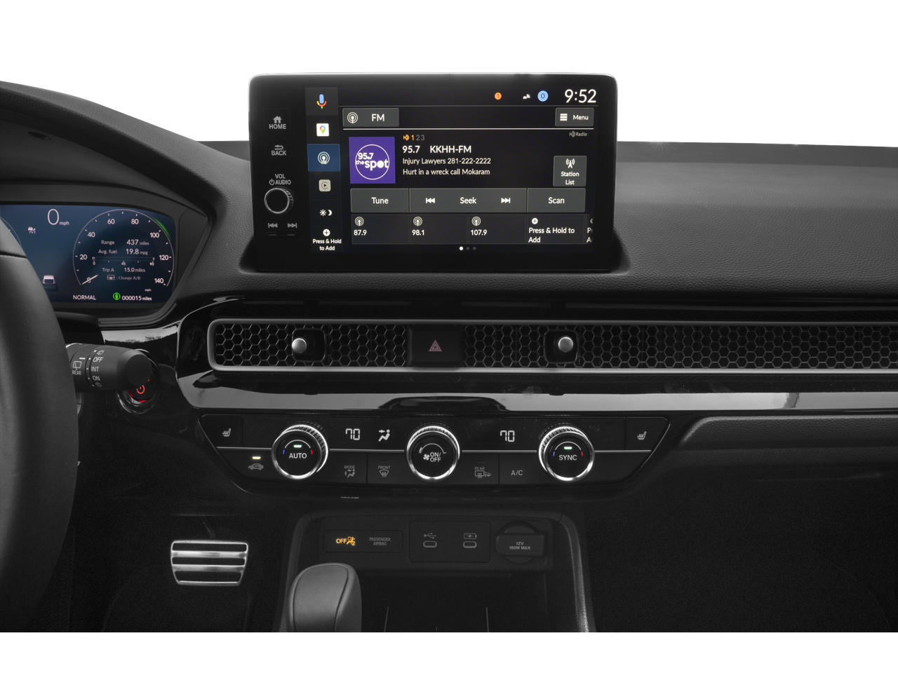 This 2026 Honda Civic Hybrid Sport Touring in Meteorite Gray Metallic comes with the following features: 2.0L I4 DOHC 16V eCVT FWD 2.0L I4 DOHC 16V, 12 Speakers, 4-Wheel Disc Brakes, ABS brakes, Adaptive Cruise Control: Adaptive Cruise Control (ACC) with Low-Speed Follow, Air Conditioning, Alloy wheels, AM/FM radio, Apple CarPlay/Android Auto, Auto High-beam Headlights, Auto-dimming Rear-View mirror, Automatic temperature control, Blind Spot Information (BSI) System warning, Bose Premium Sound System, Brake assist, Bumpers: body-color, Compass, Delay-off headlights, Driver door bin, Driver vanity mirror, Dual front impact airbags, Dual front side impact airbags, Electronic Stability Control, Emergency communication system: HondaLink, Exterior Parking Camera Rear, Four wheel independent suspension, Front anti-roll bar, Front Bucket Seats, Front Center Armrest, Front dual zone A/C, Front reading lights, Fully automatic headlights, Heated door mirrors, Heated Front Bucket Seats, Heated front seats, Illuminated entry, Knee airbag, Lane departure: Lane Keeping Assist System (LKAS) active, Leather Shift Knob, Leather steering wheel, Leather-Trimmed Seat Trim, Low tire pressure warning, Navigation system: Google Maps, Occupant sensing airbag, Outside temperature display, Overhead airbag, Overhead console, Panic alarm, Passenger door bin, Passenger vanity mirror, Power door mirrors, Power driver seat, Power moonroof, Power passenger seat, Power steering, Power windows, Radio data system, Rain sensing wipers, Rear anti-roll bar, Rear seat center armrest, Rear side impact airbag, Rear window defroster, Rear window wiper, Remote keyless entry, Security system, Speed control, Speed-sensing steering, Split folding rear seat, Steering wheel mounted audio controls, Tachometer, Telescoping steering wheel, Tilt steering wheel, Traction control, Trip computer, Turn signal indicator mirrors, Variably intermittent wipers, and Wheels: 18 Alloy with Matte Shark Gray Inserts. 50/45 City/Highway MPG