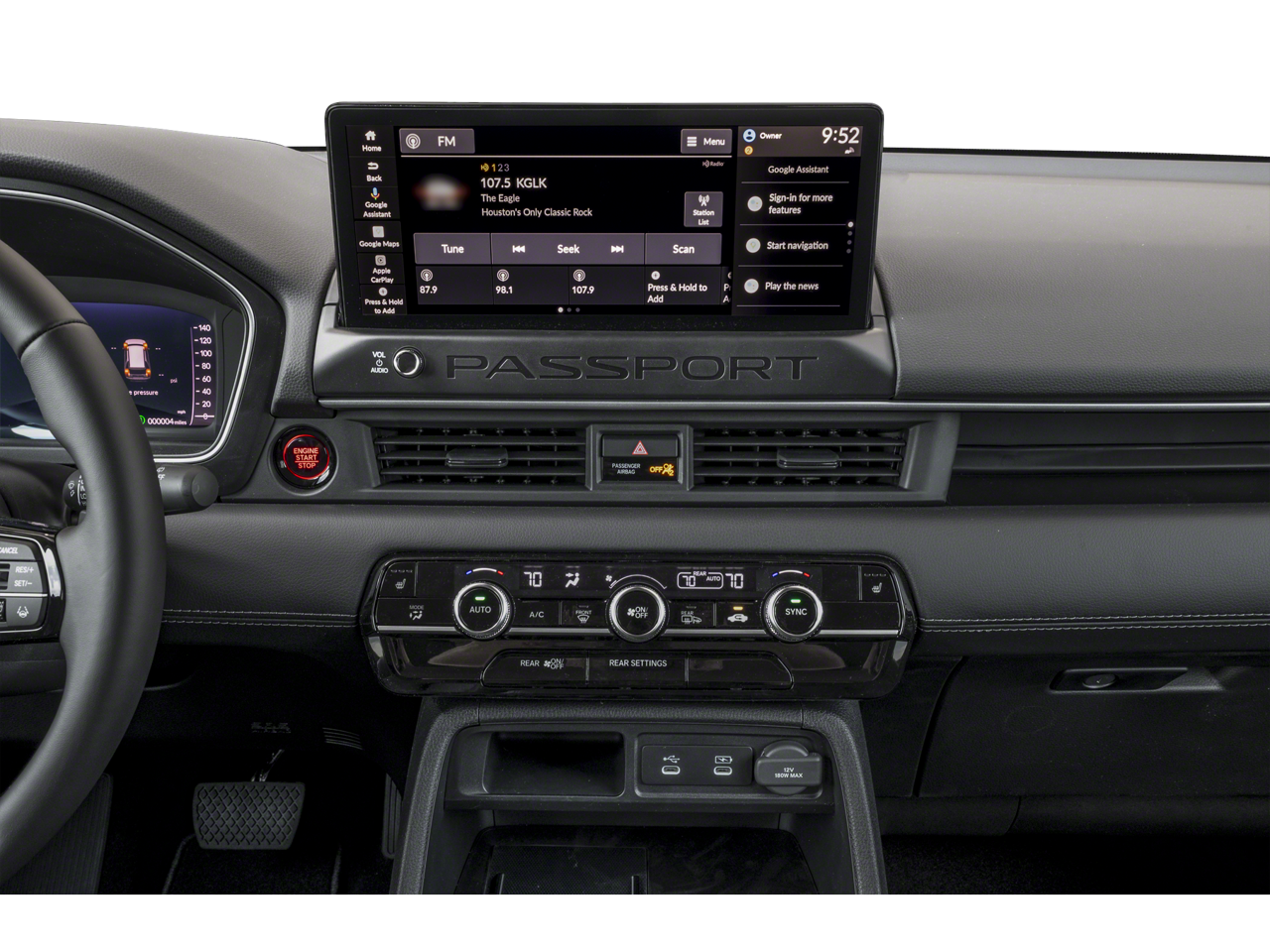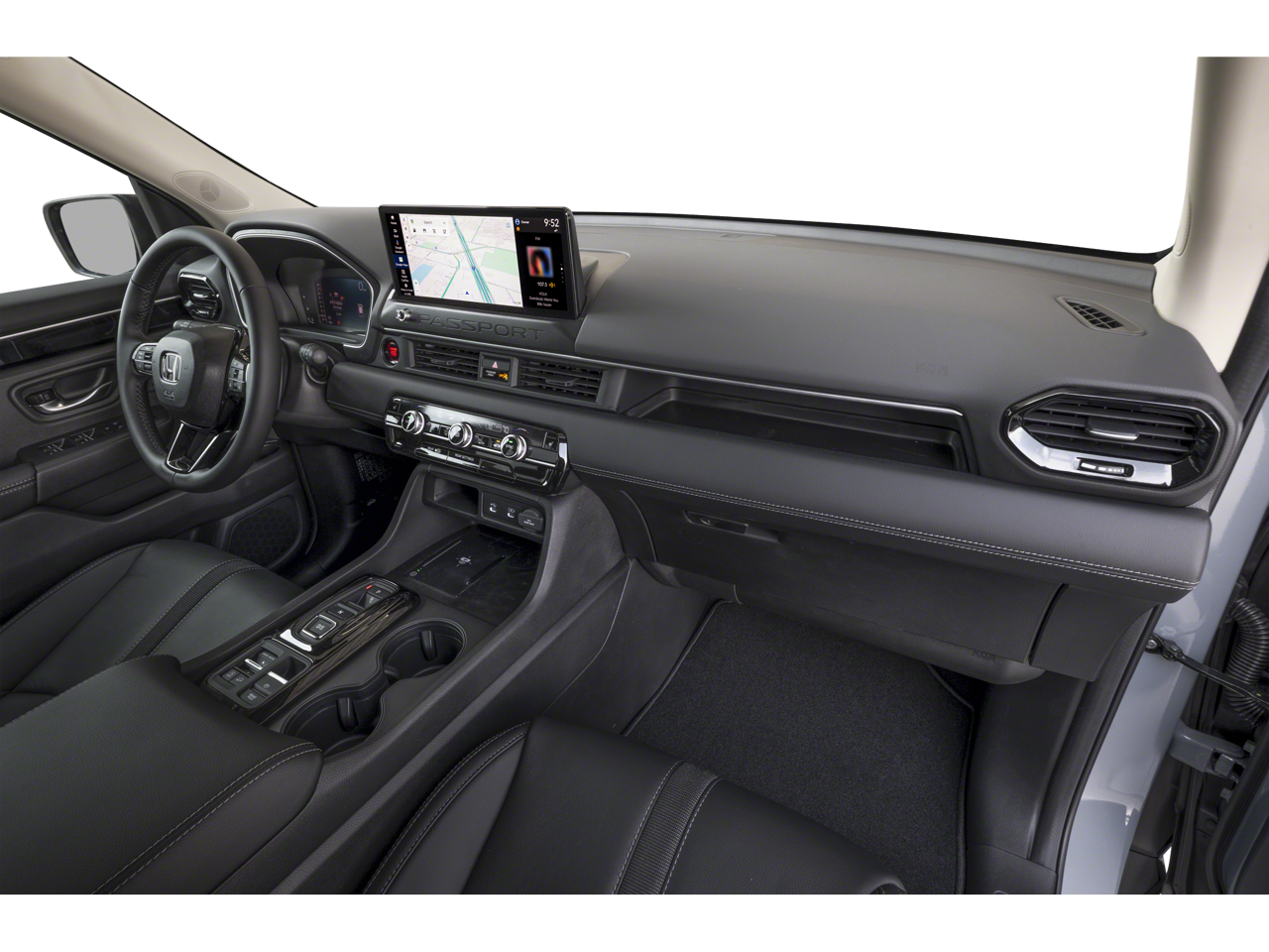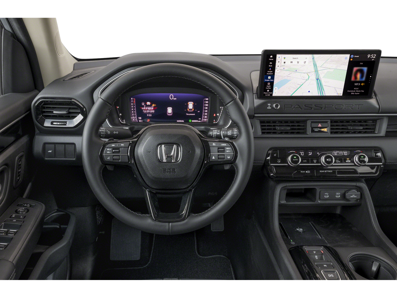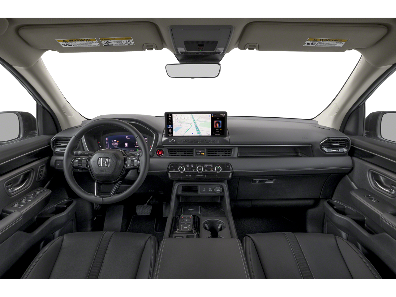 This 2026 Honda Passport RTL in Platinum White Pearl comes with the following features: 3.5L V6 DOHC 24V 10-Speed Automatic AWD 4-Wheel Disc Brakes, 9 Speakers, ABS brakes, Adaptive Cruise Control: Adaptive Cruise Control (ACC) with Low-Speed Follow, Air Conditioning, Alloy wheels, Apple CarPlay/Android Auto, Auto High-beam Headlights, Auto-dimming Rear-View mirror, Automatic temperature control, Blind Spot Information (BSI) System warning, Brake assist, Compass, Delay-off headlights, Driver door bin, Driver vanity mirror, Driver's Seat Mounted Armrest, Dual front impact airbags, Dual front side impact airbags, Electronic Stability Control, Emergency communication system: HondaLink, Exterior Parking Camera Rear, Four wheel independent suspension, Front anti-roll bar, Front Bucket Seats, Front Center Armrest, Front dual zone A/C, Front reading lights, Fully automatic headlights, Heated door mirrors, Heated Front Bucket Seats, Heated front seats, HVAC memory, Illuminated entry, Knee airbag, Lane departure: Lane Keeping Assist System (LKAS) active, Leather and Cloth Seat Trim, Leather steering wheel, Low tire pressure warning, Memory seat, Navigation system: Google Maps, Occupant sensing airbag, Outside temperature display, Overhead airbag, Overhead console, Panic alarm, Passenger door bin, Passenger seat mounted armrest, Passenger vanity mirror, Power door mirrors, Power driver seat, Power Liftgate, Power passenger seat, Power steering, Power windows, Radio data system, Radio: Audio System with 9 Speakers, Rear air conditioning, Rear anti-roll bar, Rear reading lights, Rear seat center armrest, Rear window defroster, Rear window wiper, Remote keyless entry, Security system, Speed control, Speed-sensing steering, Split folding rear seat, Spoiler, Steering wheel mounted audio controls, Tachometer, Telescoping steering wheel, Tilt steering wheel, Traction control, Trip computer, Variably intermittent wipers, and Wheels: 18 Shark Grey Alloy.