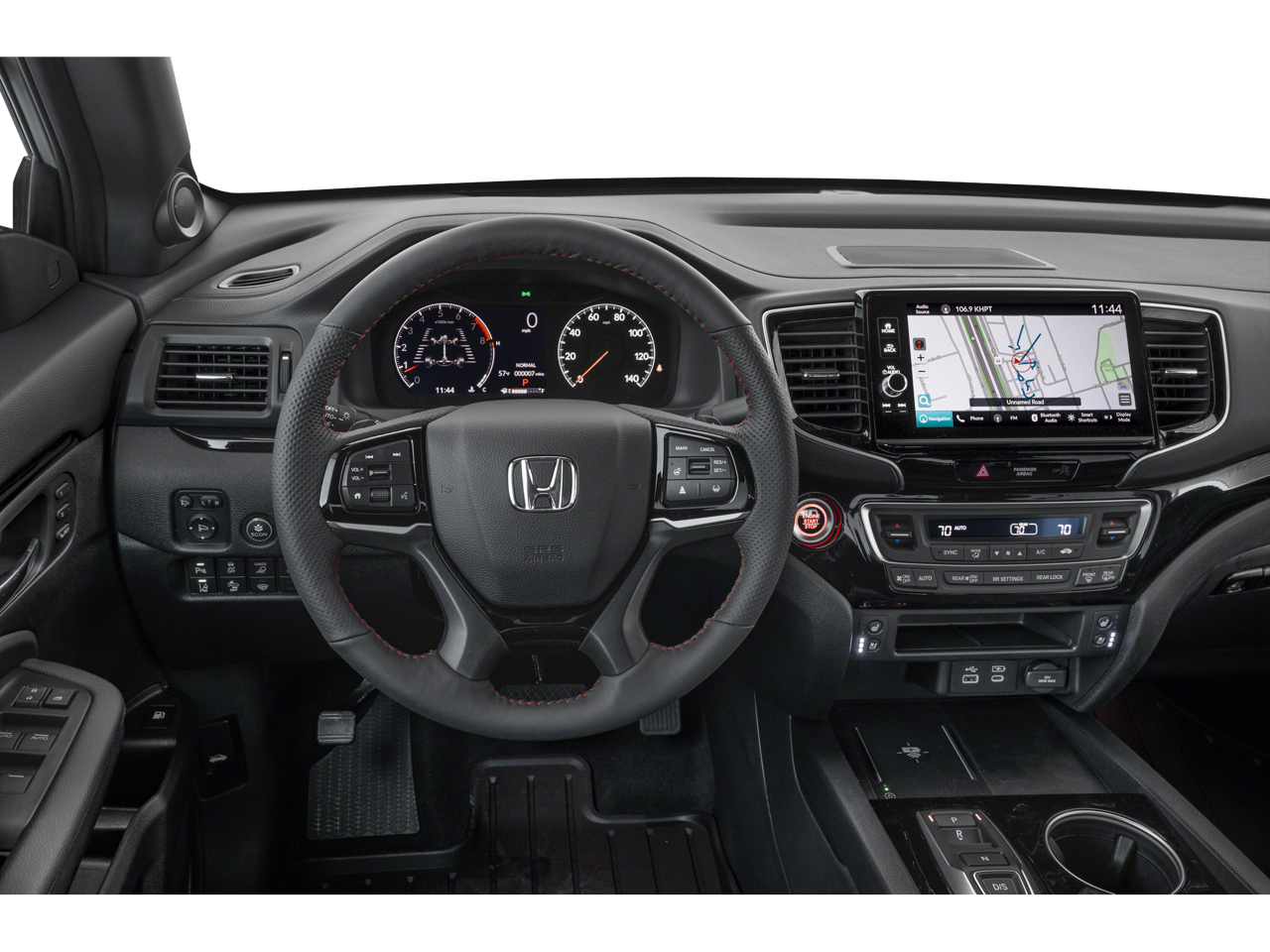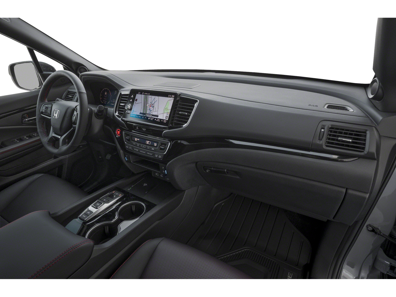 This 2026 Honda Ridgeline Black Edition in Sonic Gray Pearl comes with the following features: 3.5L V6 SOHC i-VTEC 24V 9-Speed Automatic AWD Black Leather, 4-Wheel Disc Brakes, 4.33 Axle Ratio, 8 Speakers, ABS brakes, Air Conditioning, Alloy wheels, AM/FM radio: SiriusXM, Auto High-beam Headlights, Auto-dimming Rear-View mirror, Automatic temperature control, Blind Spot Information (BSI) System warning, Bluetooth® Hands-Free Link, Brake assist, Bumpers: body-color, Compass, Delay-off headlights, Driver door bin, Driver vanity mirror, Driver's Seat Mounted Armrest, Dual front impact airbags, Dual front side impact airbags, Electronic Stability Control, Emergency communication system: HondaLink Assist, Exterior Parking Camera Rear, Four wheel independent suspension, Front anti-roll bar, Front Bucket Seats, Front dual zone A/C, Front fog lights, Front reading lights, Fully automatic headlights, Garage door transmitter: HomeLink, Heated and Ventilated Front Bucket Seats, Heated door mirrors, Heated front seats, Heated rear seats, Heated steering wheel, Honda Satellite-Linked Navigation System, Illuminated entry, Leather Seat Trim, Leather steering wheel, Low tire pressure warning, Memory seat, Navigation system: Honda Satellite-Linked Navigation System, Occupant sensing airbag, Outside temperature display, Overhead airbag, Overhead console, Panic alarm, Passenger door bin, Passenger seat mounted armrest, Passenger vanity mirror, Power door mirrors, Power driver seat, Power moonroof, Power passenger seat, Power steering, Power windows, Radio data system, Radio: 540-Watt Premium Audio System with 8 Speakers, Rear air conditioning, Rear anti-roll bar, Rear reading lights, Rear seat center armrest, Rear step bumper, Rear window defroster, Remote keyless entry, Security system, SiriusXM, Speed control, Speed-sensing steering, Split folding rear seat, Steering wheel mounted audio controls, Tachometer, Telescoping steering wheel, Tilt steering wheel, Traction control, Trip computer, Turn signal indicator mirrors, Variably intermittent wipers, Ventilated front seats, and Wheels: 18 Berlina Black Alloy.