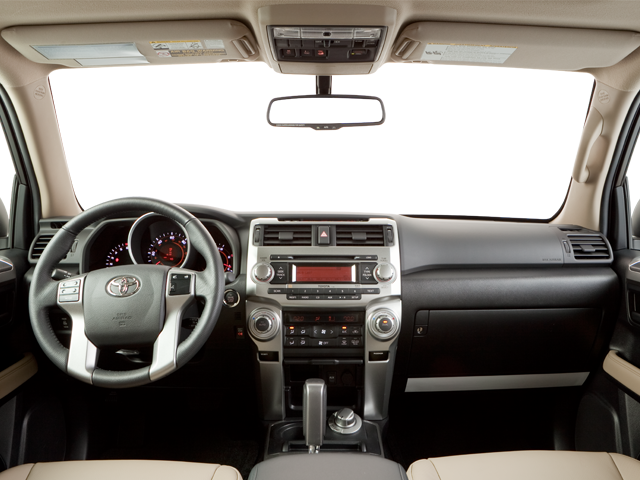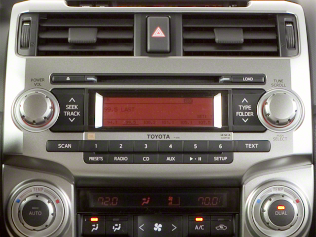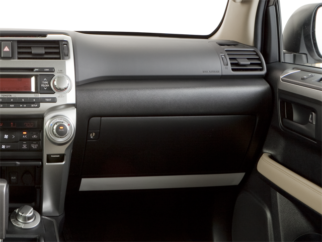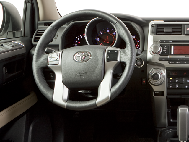 This 2012 Toyota 4Runner comes nicely equipped with Black Leather, 17 x 7.0 6-Spoke Alloy Wheels, ABS brakes, Alloy wheels, Compass, Electronic Stability Control, Heated door mirrors, Illuminated entry, Low tire pressure warning, Remote keyless entry, Traction control, 3.727 Axle Ratio, 4-Wheel Disc Brakes, 8 Speakers, Air Conditioning, AM/FM radio: SiriusXM, Anti-whiplash front head restraints, Brake assist, Bucket Seats, Bumpers: body-color, CD player, Driver door bin, Driver vanity mirror, Dual front impact airbags, Dual front side impact airbags, Front anti-roll bar, Front Bucket Seats, Front Center Armrest, Front fog lights, Front reading lights, Front wheel independent suspension, Garage door transmitter: HomeLink, Knee airbag, Low Fabric Seat Trim, Occupant sensing airbag, Outside temperature display, Overhead airbag, Overhead console, Panic alarm, Passenger door bin, Passenger vanity mirror, Power door mirrors, Power steering, Power windows, Radio: AM/FM/MP3 CD Player w/8 Speakers, Rear anti-roll bar, Rear Parking Sensors, Rear seat center armrest, Rear window defroster, Rear window wiper, Roof rack: rails only, Speed control, Speed-sensing steering, Split folding rear seat, Spoiler, Steering wheel mounted audio controls, Tachometer, Telescoping steering wheel, Tilt steering wheel, Trip computer, Turn signal indicator mirrors, Variably intermittent wipers, and Voltmeter.