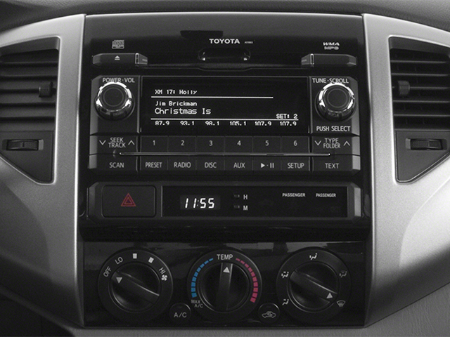 This 2014 Toyota Tacoma comes nicely equipped with 16 x 7J+30 Style Steel Wheels, 3.727 Axle Ratio, 6 Speakers, ABS brakes, Air Conditioning, AM/FM radio, Anti-whiplash front head restraints, Brake assist, CD player, Driver door bin, Dual front impact airbags, Dual front side impact airbags, Electronic Stability Control, Fabric Seat Trim, Front anti-roll bar, Front Bucket Seats, Front Center Armrest, Front reading lights, Front wheel independent suspension, Illuminated entry, Low tire pressure warning, Occupant sensing airbag, Overhead airbag, Overhead console, Passenger door bin, Passenger vanity mirror, Power door mirrors, Power steering, Power windows, Radio: Entune AM/FM/CD, Rear step bumper, Speed-sensing steering, Split folding rear seat, Tachometer, Telescoping steering wheel, Tilt steering wheel, and Traction control.