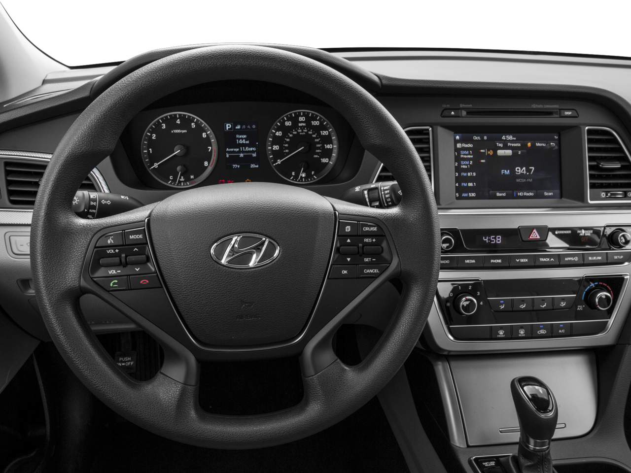 This 2017 Hyundai Sonata comes nicely equipped with Option Group 01, Gray Cloth, 16 x 6.5J Aluminum Alloy Wheels, 4-Wheel Disc Brakes, 6 Speakers, ABS brakes, Air Conditioning, Alloy wheels, AM/FM radio: SiriusXM, Brake assist, Bumpers: body-color, CD player, Driver door bin, Driver vanity mirror, Dual front impact airbags, Dual front side impact airbags, Electronic Stability Control, Four wheel independent suspension, Front anti-roll bar, Front Bucket Seats, Front Center Armrest, Front reading lights, Heated door mirrors, Illuminated entry, Knee airbag, Low tire pressure warning, Occupant sensing airbag, Outside temperature display, Overhead airbag, Overhead console, Panic alarm, Passenger door bin, Passenger vanity mirror, Power door mirrors, Power steering, Power windows, Radio: AM/FM/SiriusXM/CD/MP3 Audio System, Rear anti-roll bar, Rear seat center armrest, Rear window defroster, Remote keyless entry, Security system, Speed control, Speed-sensing steering, Speed-Sensitive Wipers, Split folding rear seat, Spoiler, Steering wheel mounted audio controls, Tachometer, Telescoping steering wheel, Tilt steering wheel, Traction control, Trip computer, Variably intermittent wipers, and YES Essentials Premium Cloth Seating Surfaces.