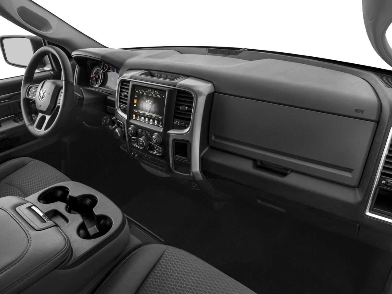 This 2017 Ram 1500 Big Horn in Granite Crystal Metallic Clearcoat comes with the following features: 3.6L V6 24V VVT 8-Speed Automatic 4WD Big Horn Regional Package, Heated Seats & Wheel Group (DISC) (Heated Front Seats and Heated Steering Wheel), Quick Order Package 22S Big Horn (115V Auxiliary Power Outlet, 40/20/40 Split Bench Seat, 6 Month Trial (Reg. Required), 6 Month Trial (Registration Required), 8.4 Touchscreen Display, Air Conditioning ATC w/Dual Zone Control, Audio Jack Input for Mobile Devices, Auto-Dimming Exterior Mirrors, Auto-Dimming Rear-View Mirror, Big Horn Badge, Bright/Bright Billets Grille, Charge Only Remote USB Port, Class IV Receiver Hitch, Electric Shift-On-Demand Transfer Case, Electroluminescent Instrument Cluster, Exterior Mirrors Courtesy Lamps, Exterior Mirrors w/Supplemental Signals, Fog Lamps, Folding Flat Load Floor Storage, For Details Visit DriveUconnect.com, Front Armrest w/3 Cupholders, Front Center Seat Cushion Storage, Glove Box Lamp, GPS Antenna Input, Integrated Voice Command w/Bluetooth®, Leather Wrapped Steering Wheel, LED Bed Lighting, Media Hub (USB, AUX), Nav-Capable! See Dealer for Details, Overhead Console w/Garage Door Opener, ParkSense Front/Rear Park Assist System, ParkView Rear Back-Up Camera, Power 10-Way Driver Seat, Power Heated Fold-Away Mirrors, Power Lumbar Adjust, Power-Folding Mirrors, Premium Cloth 40/20/40 Bench Seat, Radio: Uconnect 3C w/8.4 Display, Rear 60/40 Split Folding Seat, Rear Dome w/On/Off Switch Lamp, Remote Start System, Remote USB Port, Security Alarm, SIRIUSXM Satellite Radio, Steering Wheel Mounted Audio Controls, Storage Tray, Sun Visors w/Illuminated Vanity Mirrors, Uconnect Access, Underhood Lamp, Universal Garage Door Opener, and Wheels: 20 x 8 Aluminum Chrome Clad), 1 Yr. Trial (Registration Required), 17 x 7 Aluminum Wheels, 3.21 Rear Axle Ratio, 4-Wheel Disc Brakes, 5-Year SiriusXM Traffic Service, 5-Year SiriusXM Travel Link Service, 6 Speakers, ABS brakes, Active Grille Shutters, Air Conditioning, Alloy wheels, AM/FM radio, Black Exterior Mirrors, Black Rotary Shifter, Brake assist, Bumpers: chrome, Center Hub, Cloth 40/20/40 Bench Seat, Compass, Delay-off headlights, Driver door bin, Dual front impact airbags, Dual front side impact airbags, Electronic Shift, Electronic Stability Control, Exterior Mirrors w/Heating Element, Front anti-roll bar, Front Center Armrest w/Storage, Front reading lights, Front wheel independent suspension, Fully automatic headlights, GPS Navigation, HD Radio, Heated door mirrors, Illuminated entry, Low tire pressure warning, Occupant sensing airbag, Outside temperature display, Overhead airbag, Overhead console, Panic alarm, Passenger door bin, Passenger vanity mirror, Power door mirrors, Power steering, Power windows, Radio data system, Radio: Uconnect 3 w/5 Display, Radio: Uconnect 3C Nav w/8.4 Display, Rear anti-roll bar, Rear seat center armrest, Rear step bumper, Remote keyless entry, SIRIUSXM Traffic, SiriusXM Travel Link, Speed control, Tachometer, Tilt steering wheel, Tip Start, Traction control, Trip computer, Uconnect Access 1 Year Trial, Variably intermittent wipers, and VoltmeteR.