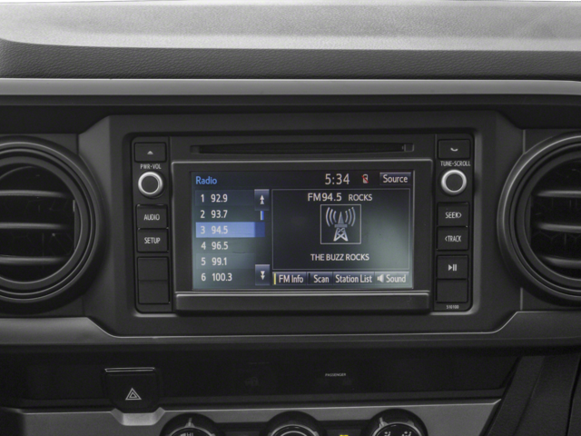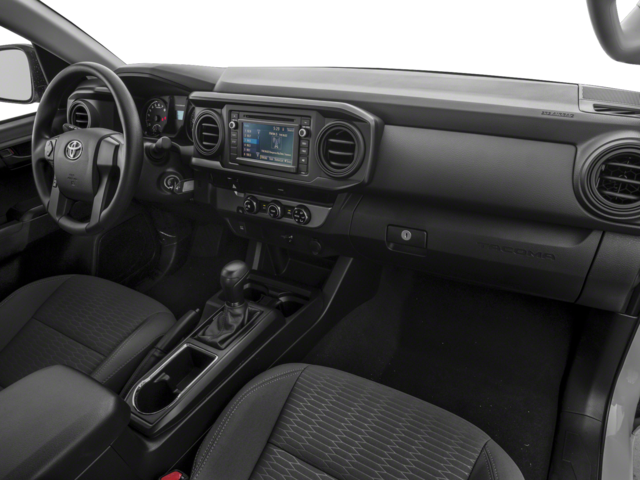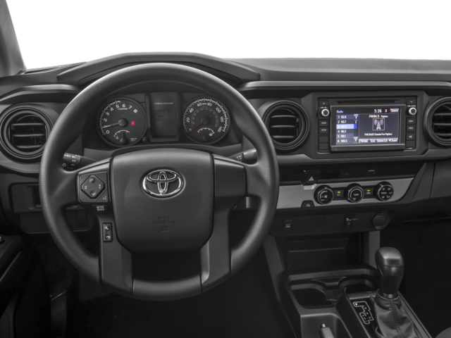 This 2018 Toyota Tacoma SR in comes with the following features: 16 x 7J+30 Style Steel Disc Wheels, 6 Speakers, ABS brakes, Air Conditioning, AM/FM radio, Anti-whiplash front head restraints, Auto High-beam Headlights, Axle Ratio: 4.30, Brake assist, Bumpers: body-color, CD player, Driver door bin, Dual front impact airbags, Dual front side impact airbags, Electronic Stability Control, Exterior Parking Camera Rear, Fabric Seat Trim (FB), Front anti-roll bar, Front Bucket Seats, Front Center Armrest, Front reading lights, Front wheel independent suspension, Illuminated entry, Knee airbag, Low tire pressure warning, Occupant sensing airbag, Outside temperature display, Overhead airbag, Overhead console, Passenger cancellable airbag, Passenger door bin, Power door mirrors, Power steering, Power windows, Radio: Entune AM/FM/CD, Rear step bumper, Speed control, Speed-sensing steering, Steering wheel mounted audio controls, Tachometer, Telescoping steering wheel, Tilt steering wheel, and Traction control.