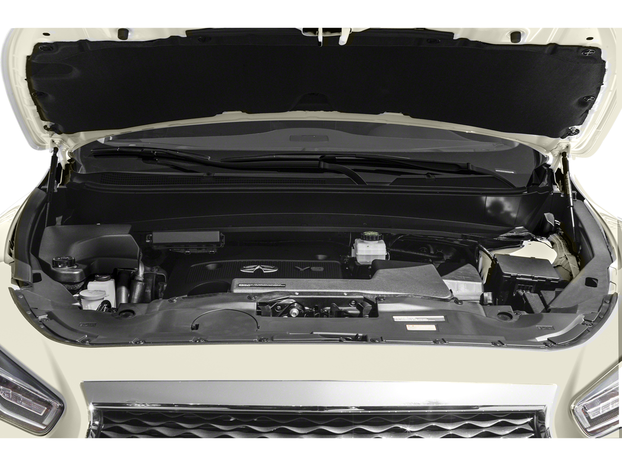This 2019 INFINITI QX60 comes nicely equipped with Cargo Package Essential (Cargo Protector, Console Net, First Aid Kit, and Rear Cargo Cover), Essential Package (Around View Monitor w/Moving Object Detection, Front & Rear Sonar System (2FR/2RR), Illuminated Kick Plates (IKP), INFINITI InTouch w/Navigation & InTouch Services, Leather-Appointed Seat Trim, Rain-Sensing Front Windshield Wipers, and Voice Recognition for Navigation Functions), ProASSIST Package (Active Trace Control, Auto Side Dimming Mirrors, Backup Collision Intervention (BCI), Blind Spot Intervention (BSI) System, Distance Control Assist, ECO Pedal, Front & Rear Sonar Sensors (4FR/4RR), High Beam Assist, Intelligent Cruise Control (Full-Speed Range), Lane Departure Prevention (LDP), and Lane Departure Warning System), 13 Speakers, 3rd row seats: bench, 4-Wheel Disc Brakes, 5.25 Axle Ratio, ABS brakes, Air Conditioning, Alloy wheels, AM/FM radio: SiriusXM, Anti-whiplash front head restraints, Auto-dimming Rear-View mirror, Automatic temperature control, Bodyside moldings, Brake assist, Bumpers: body-color, Carpeted Floor Mats (4-Piece Set), CD player, Delay-off headlights, Driver door bin, Driver vanity mirror, Dual front impact airbags, Dual front side impact airbags, DVD-Audio, Electronic Stability Control, Four wheel independent suspension, Front anti-roll bar, Front Bucket Seats, Front Center Armrest w/Storage, Front dual zone A/C, Front fog lights, Front reading lights, Fully automatic headlights, Garage door transmitter: HomeLink, Heated door mirrors, Heated Front Seats, Heated front seats, Heated steering wheel, Illuminated entry, Illuminated Kick Plates (K11), Leather steering wheel, Leatherette Seat Trim, Literature Kit, Low tire pressure warning, Memory seat, Occupant sensing airbag, Outside temperature display, Overhead airbag, Overhead console, Panic alarm, Passenger door bin, Passenger vanity mirror, Power door mirrors, Power driver seat, Power Liftgate, Power moonroof, Power passenger seat, Power steering, Power windows, Radio data system, Radio: AM/FM/CD/DVD w/Bose Premium Audio System, Rear air conditioning, Rear anti-roll bar, Rear Bumper Protector, Rear reading lights, Rear seat center armrest, Rear window defroster, Rear window wiper, Reclining 3rd row seat, Remote keyless entry, Roof rack: rails only, Security system, Speed control, Speed-sensing steering, Speed-Sensitive Wipers, Splash Guards (Color Matched, Set of 4), Split folding rear seat, Spoiler, Steering wheel memory, Steering wheel mounted audio controls, Tachometer, Telescoping steering wheel, Tilt steering wheel, Traction control, Trip computer, Turn signal indicator mirrors, Variably intermittent wipers, Welcome Lighting, and Wheels: 18 Triple 5-Spoke Aluminum-Alloy.