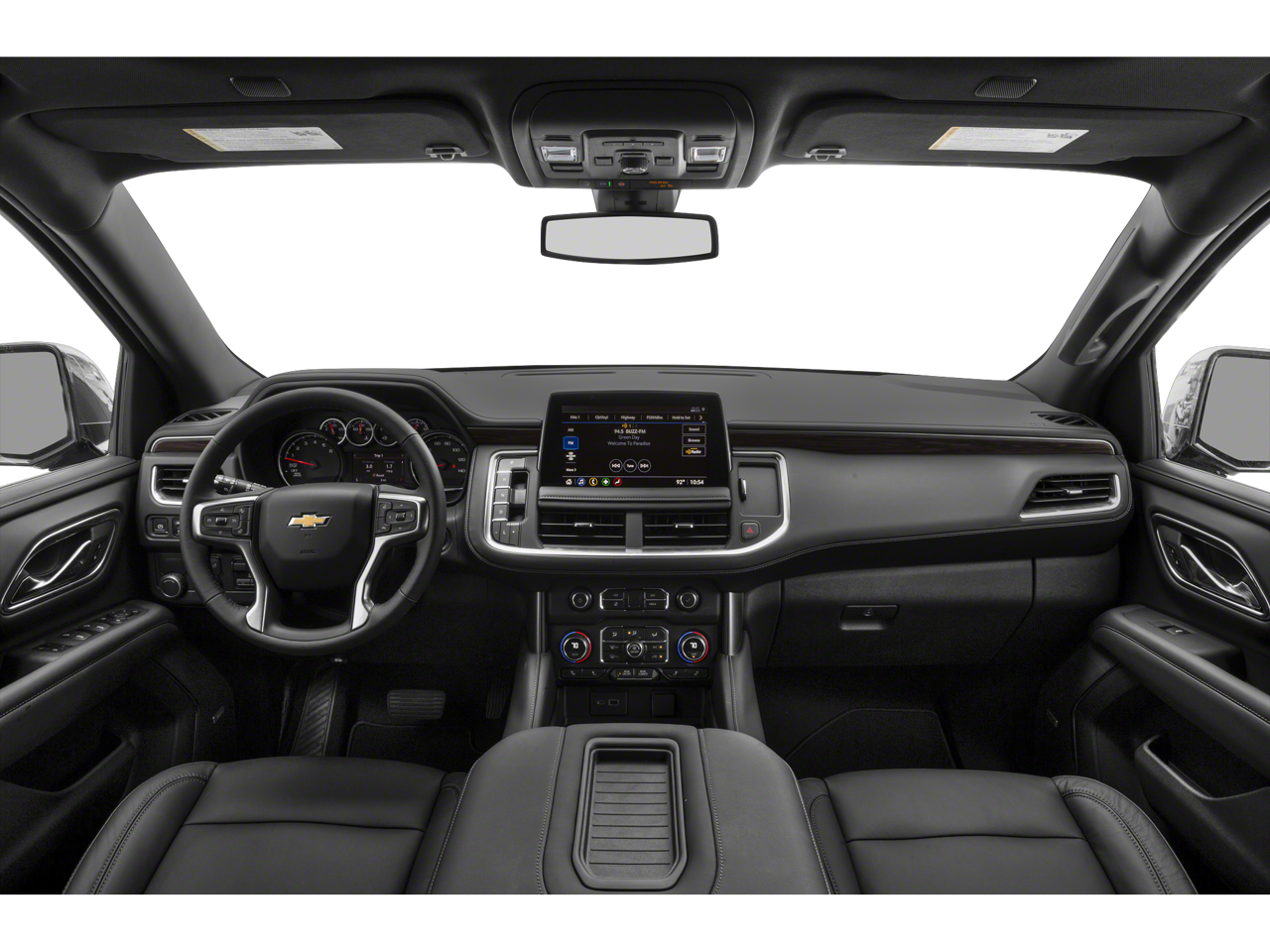 This 2021 Chevrolet Tahoe comes nicely equipped with License Plate Front Mounting Package, Preferred Equipment Group 1LT (1st & 2nd Row Color-Keyed Carpeted Floor Mats, 2 USB Data Ports, Auto-Dimming Inside Rear-View Mirror, Bright Front & Rear Door Sill Plates, Color-Keyed Carpeting Floor Covering, Driver & Front Outboard Passenger Airbags, Floor Console w/Storage Area, Hands-Free Rear Power Programmable Liftgate, HD Radio, Infotainment Display, Leather-Wrapped Steering Wheel, LED Daytime Running Lamps, Memory Settings for Driver, Remote Start, SiriusXM Radio w/360L, and Universal Home Remote), Black Leather, 10-Way Power Driver & Passenger Seat Adjusters, 2nd Row Manual Bucket Seats, 3.23 Rear Axle Ratio, 3rd row seats: split-bench, 4-Wheel Disc Brakes, 9 Speakers, ABS brakes, Air Conditioning, Alloy wheels, AM/FM radio: SiriusXM with 360L, Apple CarPlay/Android Auto, Auto High-beam Headlights, Auto-dimming Rear-View mirror, Automatic temperature control, Black Exhaust Tip (LPO), Black Name Plates (LPO), Bose 9-Speaker Stereo Audio System Feature, Brake assist, Bumpers: body-color, Compass, Delay-off headlights, Driver door bin, Driver vanity mirror, Dual front impact airbags, Dual front side impact airbags, Dual-Pane Power Panoramic Sunroof, Electronic Stability Control, Emergency communication system: OnStar and Chevrolet connected services capable, Four wheel independent suspension, Front & Rear Black Bowtie Emblems (LPO), Front anti-roll bar, Front Bucket Seats, Front Center Armrest, Front dual zone A/C, Front High-Back Reclining Bucket Seats, Front reading lights, Fully automatic headlights, Garage door transmitter, Heated door mirrors, Heated Driver & Front Passenger Seats, Heated front seats, Illuminated entry, Leather Seat Trim, Leather steering wheel, Low tire pressure warning, Memory seat, Not Equipped w/Automatic Stop/Start, Occupant sensing airbag, Outside temperature display, Overhead airbag, Overhead console, Panic alarm, Passenger door bin, Passenger vanity mirror, Power door mirrors, Power driver seat, Power Liftgate, Power passenger seat, Power steering, Power windows, Premium audio system: Chevrolet Infotainment 3, Premium Smooth Ride Suspension, Radio: Chevrolet Infotainment 3 Plus System, Rain sensing wipers, Rear air conditioning, Rear anti-roll bar, Rear reading lights, Rear seat center armrest, Rear window defroster, Rear window wiper, Remote keyless entry, Roof rack: rails only, Security system, Set of 4 Wheel Locks (LPO), Speed control, Speed-sensing steering, Split folding rear seat, Spoiler, Steering wheel mounted audio controls, Tachometer, Telescoping steering wheel, Tilt steering wheel, Traction control, Trip computer, Variably intermittent wipers, Voltmeter, Wheels: 18 x 8.5 Bright Silver Painted Aluminum, and Wheels: 20 x 9 Painted Aluminum.