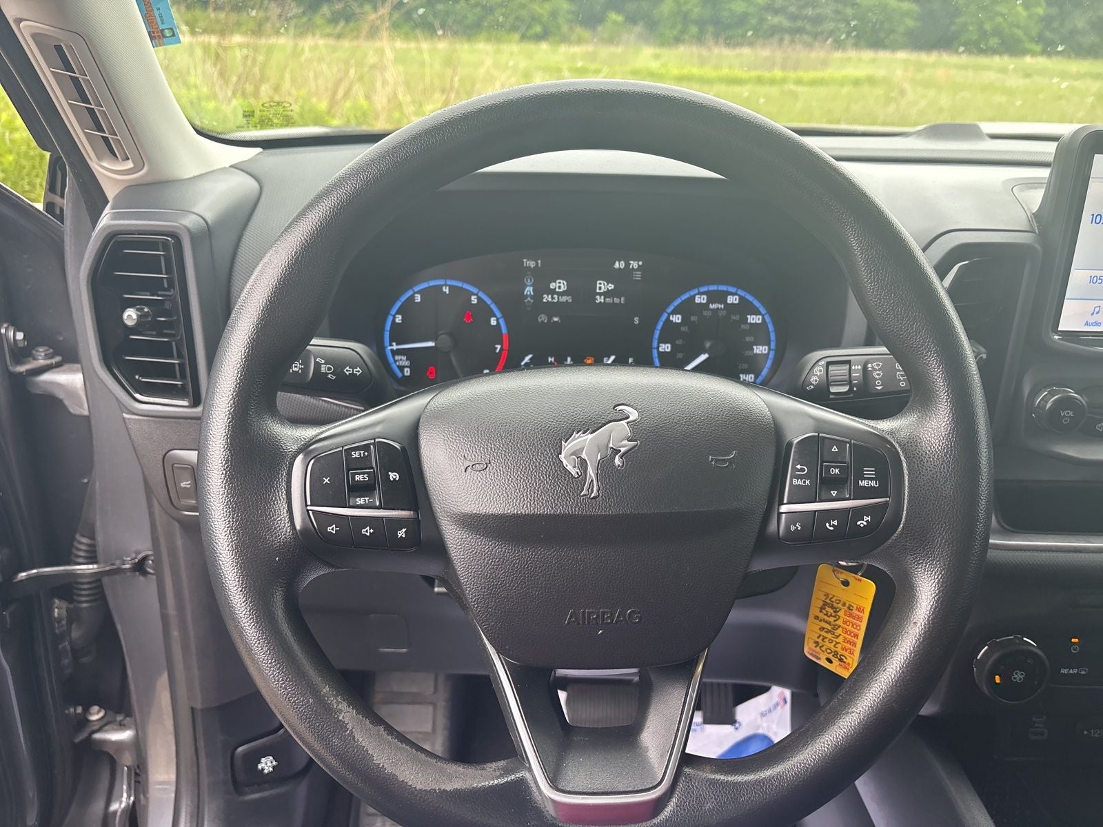 This 2021 Ford Bronco Sport in Gray Metallic comes with the following features: 1.5L EcoBoost 8-Speed Automatic 4WD Equipment Group 100A, Ford Blue Advantage: Blue Certified Certified, 4D Sport Utility, 1.5L EcoBoost, 8-Speed Automatic, 4WD, Gray Metallic, Ebony Cloth, 3.80 Axle Ratio, 4-Wheel Disc Brakes, 6 Speakers, ABS brakes, Air Conditioning, Alloy wheels, AM/FM radio, AM/FM Stereo, Auto High-beam Headlights, Brake assist, Cloth Front Bucket Seats, Compass, Delay-off headlights, Driver door bin, Driver vanity mirror, Dual front impact airbags, Dual front side impact airbags, Electronic Stability Control, Emergency communication system: SYNC 3 911 Assist, Exterior Parking Camera Rear, Four wheel independent suspension, Front anti-roll bar, Front Bucket Seats, Front Center Armrest, Front reading lights, Fully automatic headlights, Illuminated entry, Knee airbag, Low tire pressure warning, Occupant sensing airbag, Outside temperature display, Overhead airbag, Overhead console, Panic alarm, Passenger door bin, Passenger vanity mirror, Power door mirrors, Power steering, Power windows, Radio data system, Rear anti-roll bar, Rear reading lights, Rear window defroster, Rear window wiper, Remote keyless entry, Roof rack: rails only, Security system, Speed control, Speed-sensing steering, Speed-Sensitive Wipers, Split folding rear seat, Steering wheel mounted audio controls, SYNC 3 Communications & Entertainment System, SYNC 3/Apple CarPlay/Android Auto, Tachometer, Telescoping steering wheel, Tilt steering wheel, Traction control, Trip computer, Variably intermittent wipers, and Wheels: 17 Sparkle Silver. Certified.