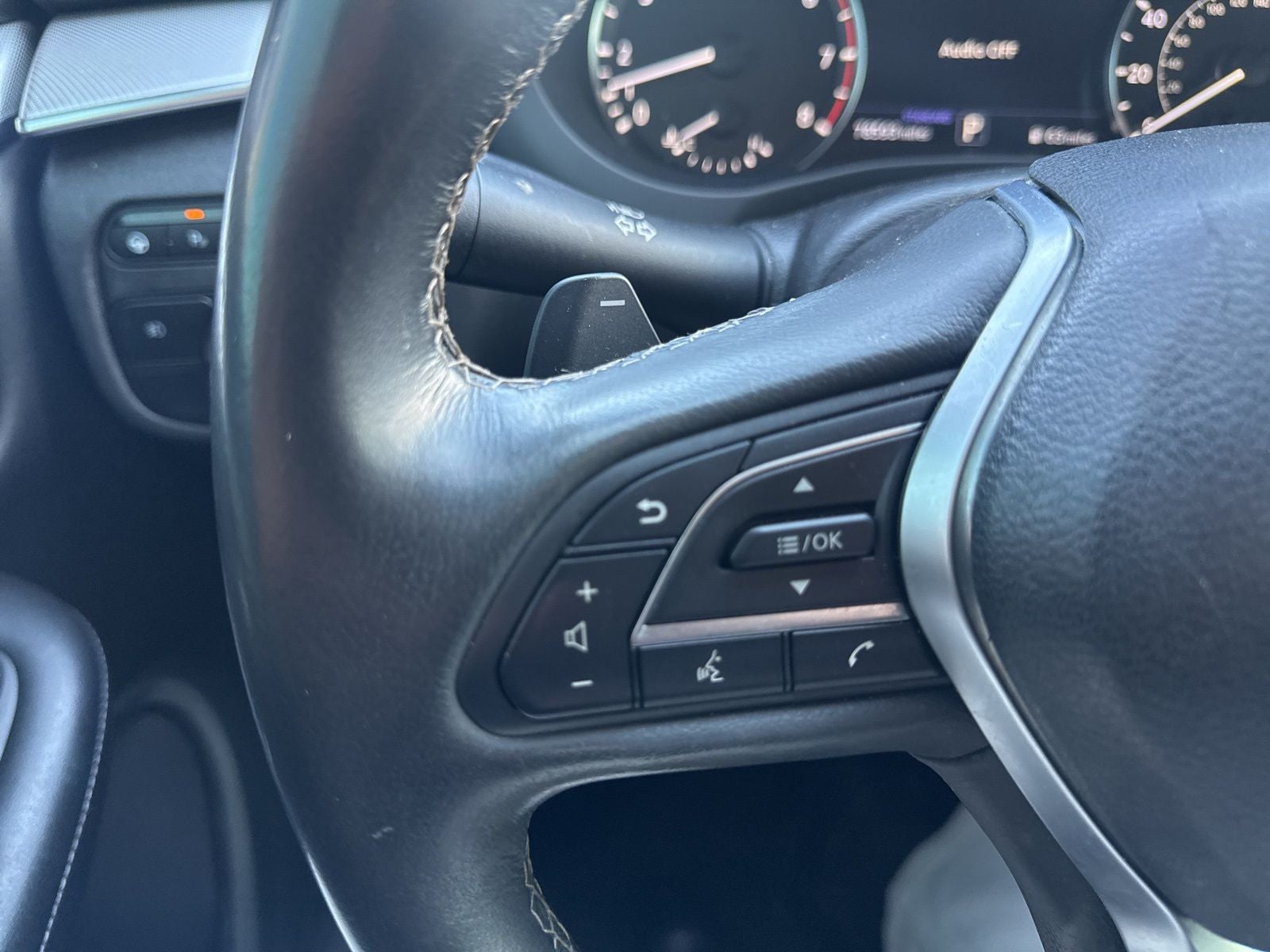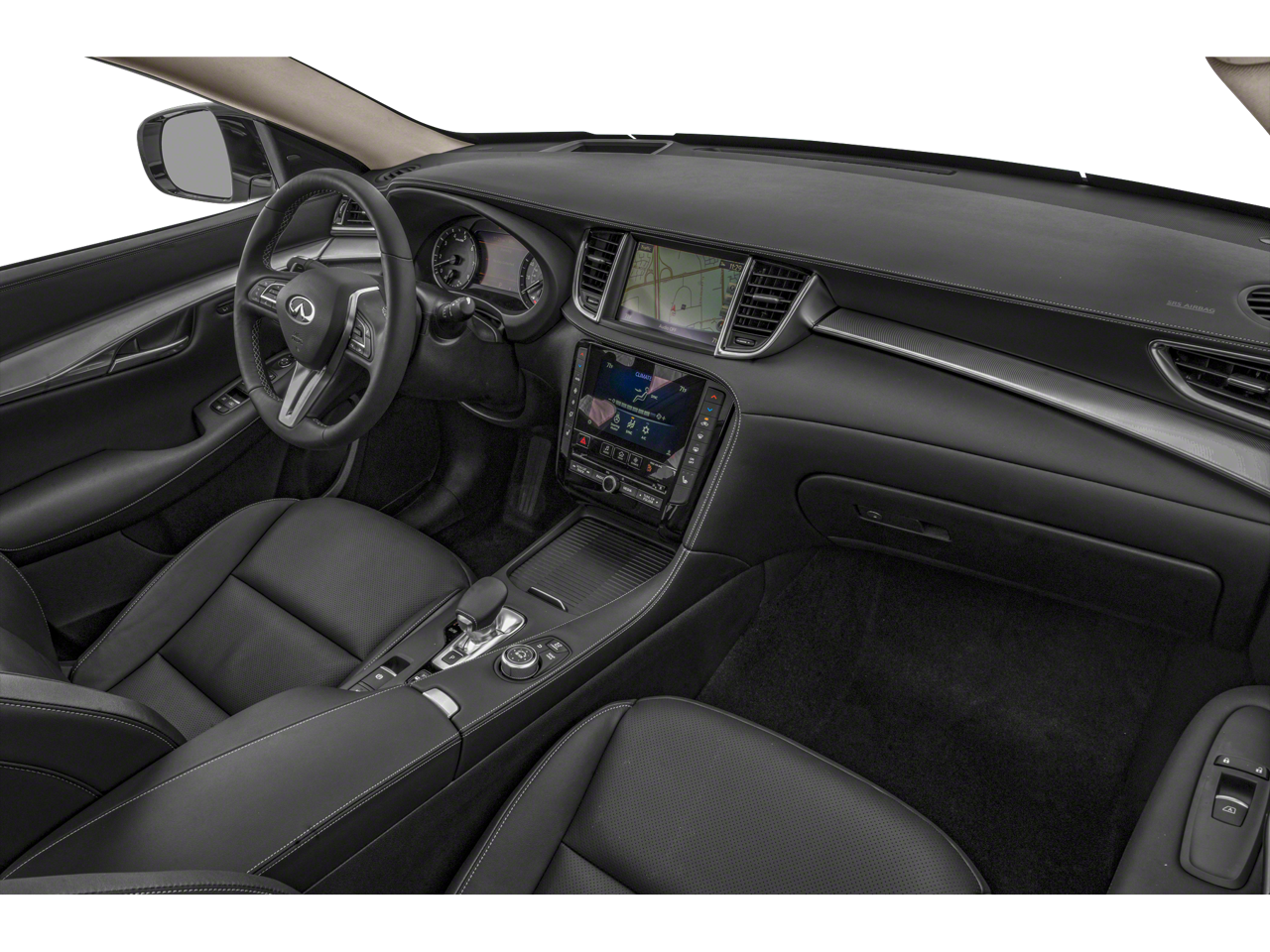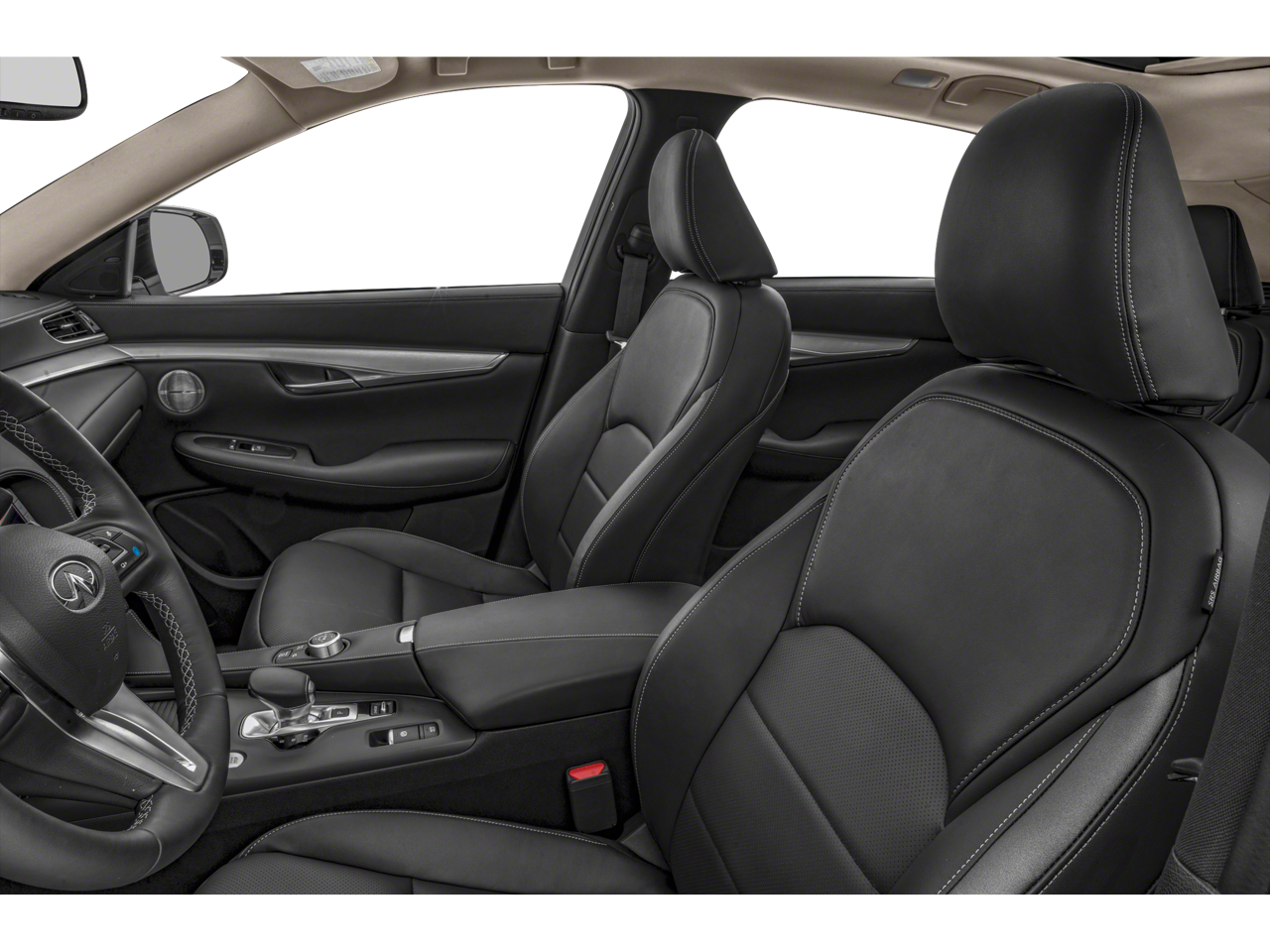 This 2021 INFINITI QX50 LUXE in Majestic White comes with the following features: Appearance Package (Black Grille Mesh, Black Outside Mirror Caps, Body Color Rear Diffuser, Dark Chrome Front Fender Accent, Dark Chrome Front Grille Surround, Dark Chrome Tailgate Finisher, Graphite Headliner, Heated Outside Mirrors, and Wheels: 20 Black and Machine Finished), 4-Wheel Disc Brakes, 5.846 Axle Ratio, 6 Speakers, ABS brakes, Air Conditioning, Alloy wheels, AM/FM radio: SiriusXM, AM/FM/CD Audio System, Anti-whiplash front head restraints, Apple CarPlay/Android Auto, Auto High-beam Headlights, Auto-dimming Rear-View mirror, Automatic temperature control, Brake assist, Bumpers: body-color, CD player, Delay-off headlights, Driver door bin, Driver vanity mirror, Dual front impact airbags, Dual front side impact airbags, Electronic Stability Control, Emergency communication system: INFINITI InTouch, Exterior Parking Camera Rear, Floor Mats, Four wheel independent suspension, Front anti-roll bar, Front Bucket Seats, Front Center Armrest, Front dual zone A/C, Front fog lights, Front reading lights, Garage door transmitter: HomeLink, Heated Front Bucket Seats, Heated front seats, Illuminated entry, Illuminated Kick Plates, Knee airbag, Leather Shift Knob, Leatherette Seat Trim, Literature Kit, Low tire pressure warning, Occupant sensing airbag, Outside temperature display, Overhead airbag, Overhead console, Panic alarm, Passenger door bin, Passenger vanity mirror, Power door mirrors, Power driver seat, Power Liftgate, Power moonroof, Power passenger seat, Power steering, Power windows, Radio data system, Rear anti-roll bar, Rear Parking Sensors, Rear reading lights, Rear seat center armrest, Rear side impact airbag, Rear window defroster, Rear window wiper, Remote keyless entry, Security system, Speed control, Speed-sensing steering, Speed-Sensitive Wipers, Splash Guards (Set of 4), Split folding rear seat, Spoiler, Steering wheel mounted audio controls, Tachometer, Telescoping steering wheel, Tilt steering wheel, Traction control, Trip computer, Turn signal indicator mirrors, Variably intermittent wipers, and Wheels: 19 x 7.5J Silver Painted Alloy. 23/29 City/Highway MPG