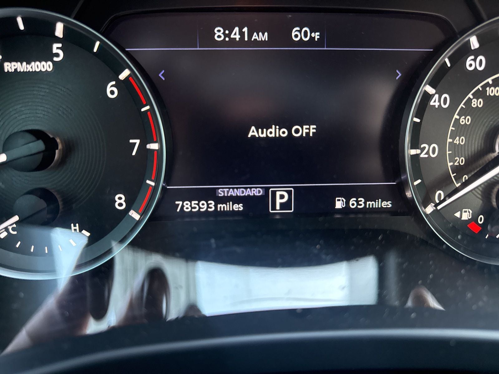- Radio: AM/FM/CD Audio System -inc: 6 speakers, 4 USB connection ports, Apple CarPlay and Android Auto, dual display system w/upper 8" and lower 7" HD touch screens, INFINITI voice recognition, HD Radio technology, SiriusXM radio w/advanced audio features w/3-month complimentary trial, streaming audio via Bluetooth®, Bluetooth® hands-free phone system, Siri eyes free, hands-free text messaging assistant, active noise cancellation, WiFi hotspot, automatic collision notification and emergency call