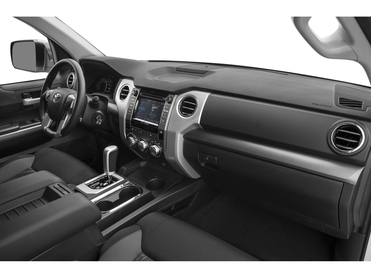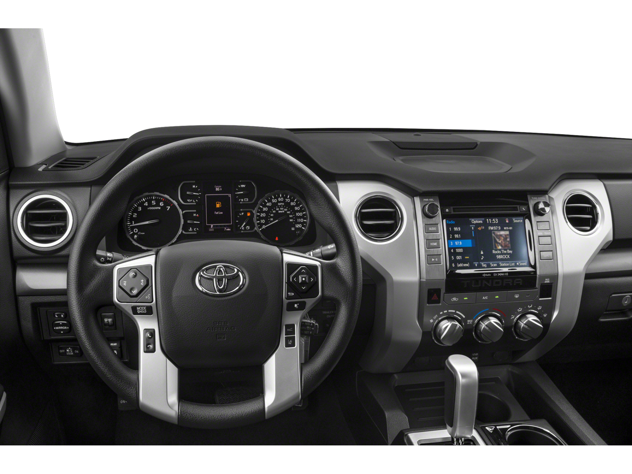 This 2021 Toyota Tundra 4WD comes nicely equipped with ABS brakes, Active Cruise Control, Compass, Electronic Stability Control, Heated door mirrors, Illuminated entry, Low tire pressure warning, Remote keyless entry, Traction control, 18 Styled Steel Wheels, 3-Passenger Front Bench Seat, 4-Wheel Disc Brakes, 4.30 Axle Ratio, 9 Speakers, Air Conditioning, AM/FM radio: SiriusXM, Apple CarPlay/Android Auto, Auto High-beam Headlights, Auto-dimming Rear-View mirror, Brake assist, Delay-off headlights, Driver door bin, Driver vanity mirror, Dual front impact airbags, Dual front side impact airbags, Emergency communication system: Safety Connect with 1-year trial, Exterior Parking Camera Rear, Fabric Seat Trim, Front anti-roll bar, Front Center Armrest w/Storage, Front fog lights, Front reading lights, Front wheel independent suspension, Fully automatic headlights, Garage door transmitter: HomeLink, Knee airbag, Occupant sensing airbag, Outside temperature display, Overhead airbag, Overhead console, Panic alarm, Passenger door bin, Passenger vanity mirror, Power door mirrors, Power steering, Power windows, Radio data system, Radio: Audio Plus AM/FM/HD Radio, Rear reading lights, Rear seat center armrest, Rear step bumper, Rear window defroster, Safety Connect, SiriusXM Radio, Speed control, Speed-sensing steering, Split folding rear seat, Steering wheel mounted audio controls, Tachometer, Tilt steering wheel, Trip computer, Variably intermittent wipers, and Voltmeter.