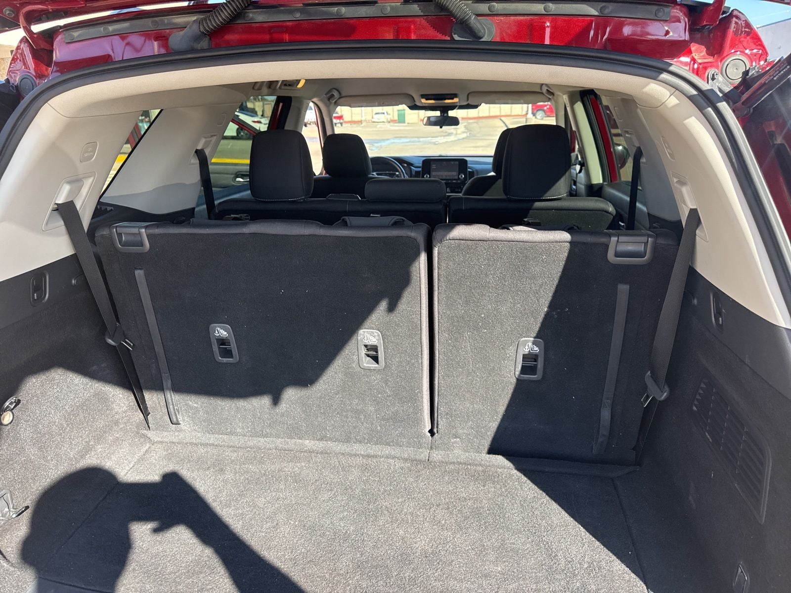 This 2022 Nissan Pathfinder SV in Scarlet Ember Tintcoat comes with the following features: 18 Painted Alloy Wheels, 3rd row seats: bench, 4-Wheel Disc Brakes, 6 Speakers, ABS brakes, Air Conditioning, Alloy wheels, AM/FM radio: SiriusXM, Auto High-beam Headlights, Automatic temperature control, Axle Ratio: TBD, Bench Seat Carpeted Floor Mats (Set of 4), Black Splash Guards (Set of 4), Brake assist, Bumpers: body-color, Cloth Seating Surfaces, Cross Bars, Delay-off headlights, Driver door bin, Driver vanity mirror, Dual front impact airbags, Dual front side impact airbags, Electronic Stability Control, Emergency communication system: NissanConnect Services, Four wheel independent suspension, Front anti-roll bar, Front Bucket Seats, Front Center Armrest, Front dual zone A/C, Front reading lights, Fully automatic headlights, Heated door mirrors, Heated Front Bucket Seats, Heated front seats, Illuminated entry, Knee airbag, Leather steering wheel, Low tire pressure warning, NissanConnect featuring Apple CarPlay and Android Auto, Occupant sensing airbag, Outside temperature display, Overhead airbag, Overhead console, Panic alarm, Passenger door bin, Passenger vanity mirror, Power door mirrors, Power driver seat, Power steering, Power windows, Radio data system, Radio: AM/FM Audio System w/NissanConnect, Rear air conditioning, Rear anti-roll bar, Rear Parking Sensors, Rear reading lights, Rear seat center armrest, Rear side impact airbag, Rear window defroster, Rear window wiper, Reclining 3rd row seat, Remote keyless entry, Security system, Speed control, Speed-sensing steering, Split folding rear seat, Spoiler, Steering wheel mounted audio controls, Tachometer, Telescoping steering wheel, Tilt steering wheel, Traction control, Trip computer, Turn signal indicator mirrors, and Variably intermittent wipers. Odometer is 7211 miles below market average! 21/26 City/Highway MPG