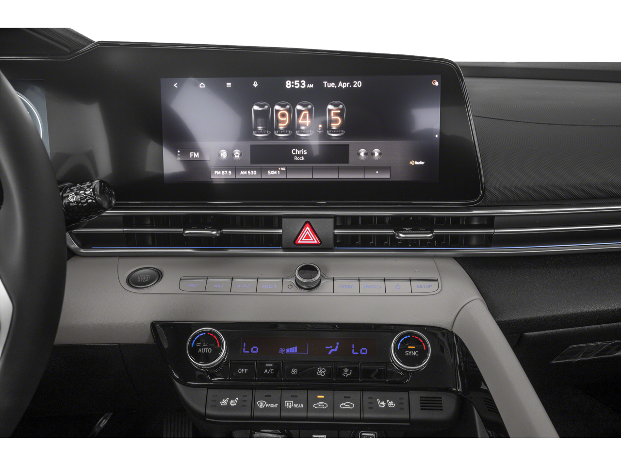 This 2023 Hyundai Elantra Hybrid Limited in Onyx Black comes with the following features: I4 6-Speed Dual Clutch FWD Option Group 01, I4, 17 x 7.0J Alloy Wheels, 4-Wheel Disc Brakes, 8 Speakers, ABS brakes, Air Conditioning, Alloy wheels, AM/FM radio: SiriusXM, Apple CarPlay & Android Auto, Auto High-beam Headlights, Auto-dimming Rear-View mirror, Automatic temperature control, Brake assist, Bumpers: body-color, Cargo Net, Carpeted Floor Mats, Delay-off headlights, Driver door bin, Driver vanity mirror, Dual front impact airbags, Dual front side impact airbags, Electronic Stability Control, Emergency communication system: Blue Link Connected Car Service (3-year complimentary subscription), Exterior Parking Camera Rear, First Aid Kit, Front anti-roll bar, Front Bucket Seats, Front Center Armrest, Front dual zone A/C, Front reading lights, Front wheel independent suspension, Fully automatic headlights, Heated & Ventilated Front Bucket Seats, Heated door mirrors, Heated front seats, Illuminated entry, Leather Seat Trim, Leather Shift Knob, Low tire pressure warning, Memory seat, Navigation System, Occupant sensing airbag, Outside temperature display, Overhead airbag, Overhead console, Panic alarm, Passenger door bin, Passenger vanity mirror, Power door mirrors, Power driver seat, Power moonroof, Power steering, Power windows, Radio: AM/FM/HD/SiriusXM Display Audio, Rear seat center armrest, Rear window defroster, Remote keyless entry, Reversible Cargo Tray, Security system, Speed control, Speed-sensing steering, Split folding rear seat, Steering wheel mounted audio controls, Tachometer, Telescoping steering wheel, Tilt steering wheel, Traction control, Trip computer, Turn signal indicator mirrors, Variably intermittent wipers, and Ventilated front seats. 49/52 City/Highway MPG