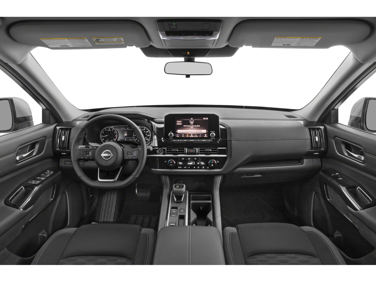 This 2023 Nissan Pathfinder SV in Gun Metallic comes with the following features: 18 Painted Alloy Wheels, 3rd row seats: bench, 4-Wheel Disc Brakes, 6 Speakers, ABS brakes, Air Conditioning, Alloy wheels, AM/FM radio: SiriusXM, Auto High-beam Headlights, Automatic temperature control, Axle Ratio: 4.334, Bench Seat Carpeted Floor Mats (Set of 4), Brake assist, Bumpers: body-color, Cloth Seating Surfaces, Delay-off headlights, Driver door bin, Driver vanity mirror, Dual front impact airbags, Dual front side impact airbags, Electronic Stability Control, Emergency communication system: NissanConnect Services, Four wheel independent suspension, Front anti-roll bar, Front Bucket Seats, Front Center Armrest, Front dual zone A/C, Front reading lights, Fully automatic headlights, Heated door mirrors, Heated Front Bucket Seats, Heated front seats, Illuminated entry, Knee airbag, Leather steering wheel, Low tire pressure warning, NissanConnect featuring Apple CarPlay and Android Auto, Occupant sensing airbag, Outside temperature display, Overhead airbag, Overhead console, Panic alarm, Passenger door bin, Passenger vanity mirror, Power door mirrors, Power driver seat, Power steering, Power windows, Radio data system, Radio: AM/FM Audio System w/NissanConnect, Rear air conditioning, Rear anti-roll bar, Rear Parking Sensors, Rear reading lights, Rear seat center armrest, Rear side impact airbag, Rear window defroster, Rear window wiper, Reclining 3rd row seat, Remote keyless entry, Security system, Speed control, Speed-sensing steering, Split folding rear seat, Spoiler, Steering wheel mounted audio controls, Tachometer, Telescoping steering wheel, Tilt steering wheel, Traction control, Trip computer, Turn signal indicator mirrors, and Variably intermittent wipers. 20/27 City/Highway MPG