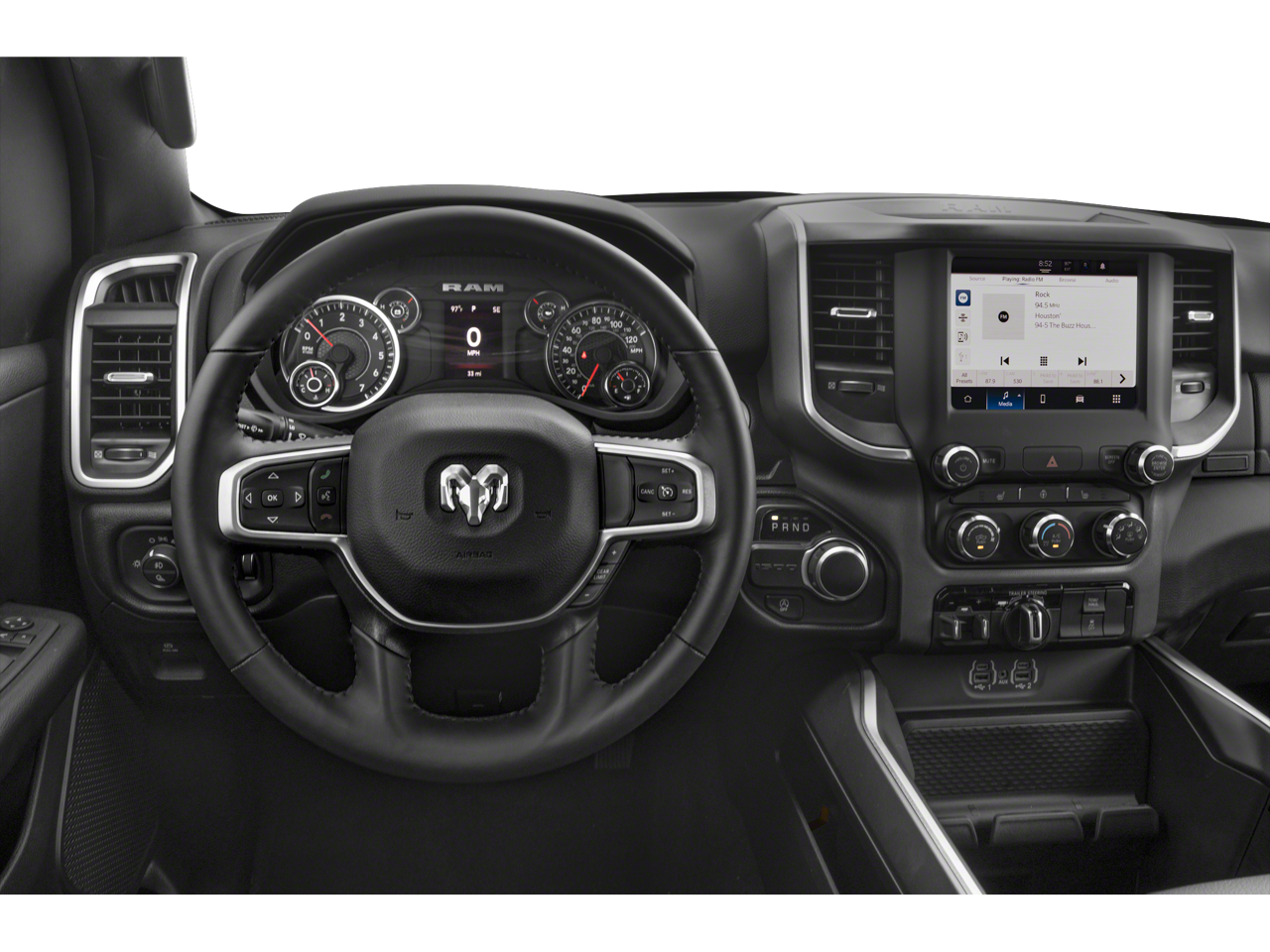 Step inside and experience the comfort and convenience of this well-appointed Ram 1500. The spacious interior, with its premium cloth seating and thoughtful amenities, provides a refined and relaxing driving environment. The available Big Horn Level 2 Equipment Group elevates your experience with features like a Heated Steering Wheel, Dual-Zone Automatic Climate Control, and a Premium Audio System.