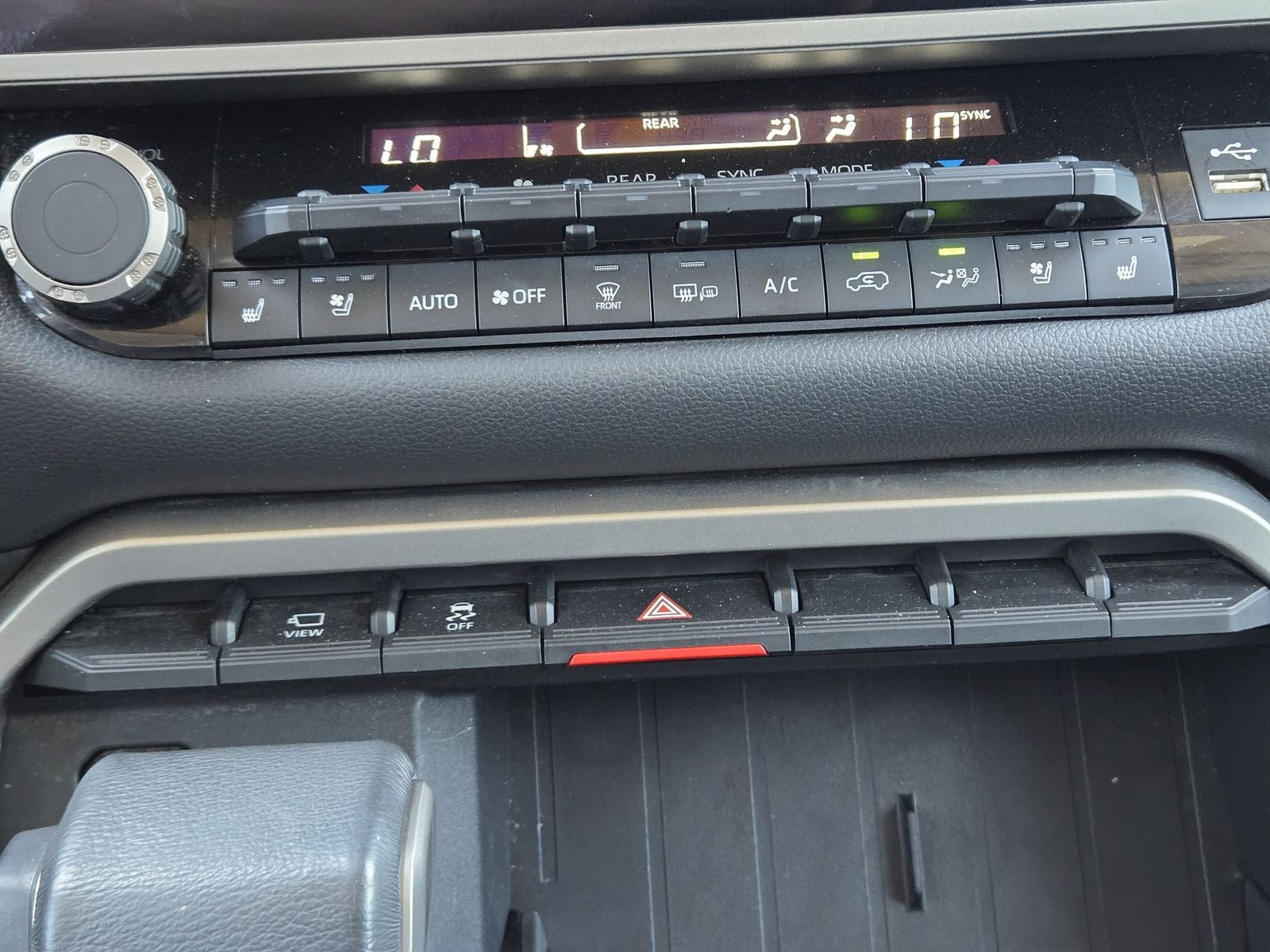This 2023 Toyota Sequoia comes nicely equipped with V6 Hybrid, 10-Speed Automatic, 4WD, ABS brakes, Active Cruise Control, Alloy wheels, Electronic Stability Control, Front dual zone A/C, Heated & Ventilated Front Seats, Heated door mirrors, Heated front seats, Illuminated entry, Low tire pressure warning, Navigation System, Power Liftgate, Power moonroof, Remote keyless entry, Traction control, 3.31 Axle Ratio, 3rd row seats: split-bench, 4-Wheel Disc Brakes, 8 Speakers, Air Conditioning, AM/FM radio: SiriusXM, Anti-whiplash front head restraints, Apple CarPlay/Android Auto, Auto High-beam Headlights, Auto-dimming door mirrors, Auto-dimming Rear-View mirror, Automatic temperature control, Brake assist, Bumpers: body-color, Delay-off headlights, Driver door bin, Driver vanity mirror, Dual front impact airbags, Dual front side impact airbags, Emergency communication system: Safety Connect (10-year trial), Front anti-roll bar, Front Bucket Seats, Front Center Armrest w/Storage, Front fog lights, Front reading lights, Front wheel independent suspension, Fully automatic headlights, Garage door transmitter: HomeLink, Headlight cleaning, Heated steering wheel, Knee airbag, Leather Shift Knob, Leather steering wheel, Memory seat, Navigation system: Drive Connect (1 year trial) includes Cloud Navigation with real time traffic and Google POI, Occupant sensing airbag, Outside temperature display, Overhead airbag, Overhead console, Panic alarm, Passenger door bin, Passenger vanity mirror, Power door mirrors, Power driver seat, Power passenger seat, Power steering, Power windows, Radio: Toyota Multimedia w/14 Display, Rear air conditioning, Rear reading lights, Rear seat center armrest, Rear window defroster, Rear window wiper, Reclining 3rd row seat, Security system, SofTex Seat Trim, Speed control, Speed-sensing steering, Split folding rear seat, Spoiler, Steering wheel mounted audio controls, Tachometer, Telescoping steering wheel, Tilt steering wheel, Trip computer, Turn signal indicator mirrors, Variably intermittent wipers, Ventilated front seats, Voltmeter, and Wheels: 20 Machined-Finish Alloy.