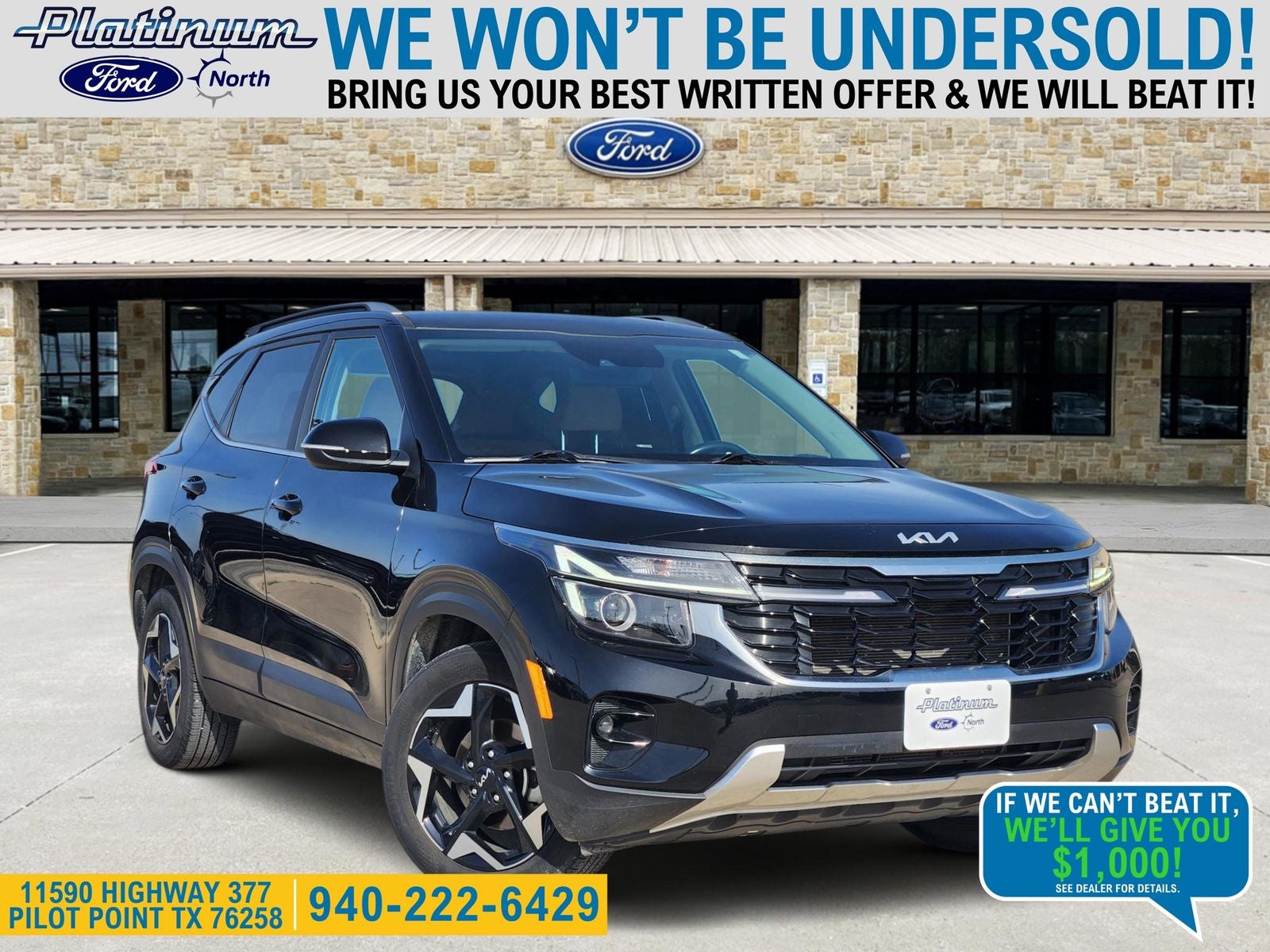 This 2024 Kia Seltos EX in Fusion Black comes with the following features: 2.0L I4 MPI CVT FWD Gentle Brown Interior Color Package, Seltos EX, Ford Blue Advantage: Blue Certified Certified, 4D Sport Utility, 2.0L I4 MPI, CVT, FWD, Fusion Black, Black Artificial Leather, 4-Wheel Disc Brakes, 6 Speakers, 6.052 Axle Ratio, ABS brakes, Air Conditioning, Alloy wheels, AM/FM radio: SiriusXM, Apple CarPlay & Android Auto, Auto High-beam Headlights, Automatic temperature control, Brake assist, Bumpers: body-color, Cargo Net (Floor), Carpet Floor Mats, Delay-off headlights, Driver door bin, Driver vanity mirror, Dual front impact airbags, Dual front side impact airbags, Electronic Stability Control, Emergency communication system: 911 Connect, Exterior Parking Camera Rear, Front anti-roll bar, Front Bucket Seats, Front Center Armrest, Front fog lights, Front reading lights, Fully automatic headlights, Heated door mirrors, Heated Front Bucket Seats, Heated front seats, Illuminated entry, Leather Shift Knob, Leather steering wheel, Low tire pressure warning, Navigation System, Occupant sensing airbag, Outside temperature display, Overhead airbag, Overhead console, Panic alarm, Passenger door bin, Passenger vanity mirror, Power door mirrors, Power driver seat, Power steering, Power windows, Rear seat center armrest, Rear window defroster, Rear window wiper, Remote keyless entry, Security system, Sofino Premium Leatherette Seat Trim, Speed control, Speed-sensing steering, Split folding rear seat, Spoiler, Steering wheel mounted audio controls, Tachometer, Telescoping steering wheel, Tilt steering wheel, Traction control, Trip computer, Turn signal indicator mirrors, and Variably intermittent wipers. Certified. Odometer is 8399 miles below market average!