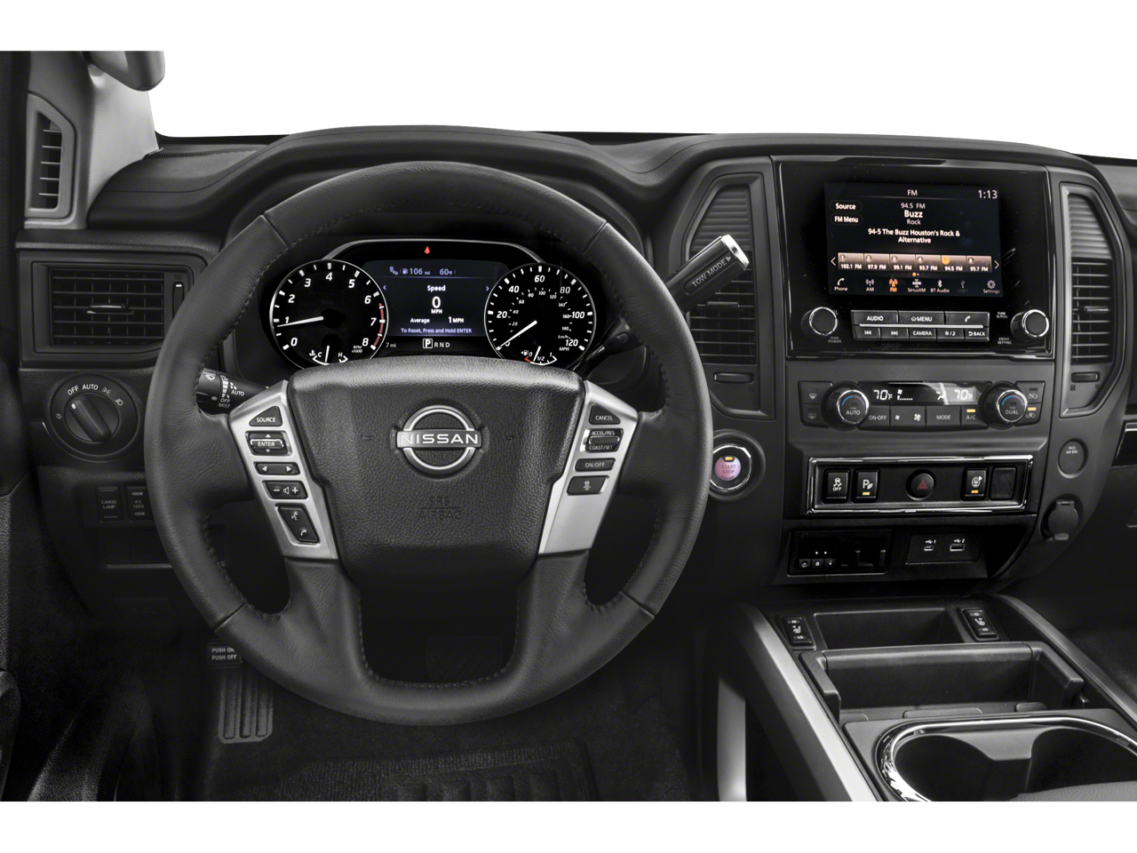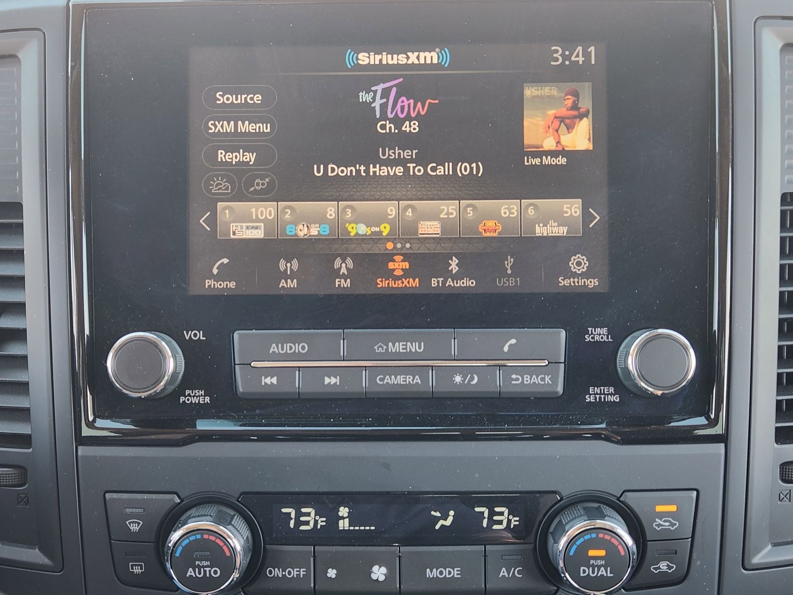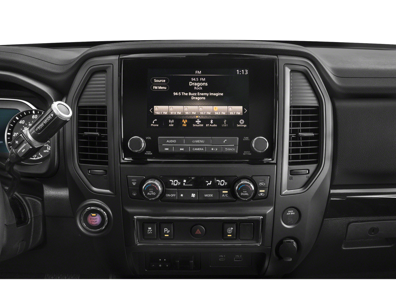 This 2024 Nissan Titan SV in Deep Blue Pearl comes with the following features: Accessory Utility Package (Bumper Step, Drop In Bed Liner, and Trailer Hitch), SV Convenience Package (120V/12V Outlets In Back Of Center Console, 2 Illuminated USB-A Ports In Back Of Center Console, Auto-Dimming Rear-View Mirror, Dedicated Cell Phone Holder, Dual Illuminated Vanity Mirror Front Sun Visors, Dual Zone Automatic HVAC, Front & Rear Parking Sensors, Heated Front Captain's Chairs, Intelligent Key System, Leather-Wrapped Steering Wheel, Mood Light, NissanConnect Services, Overhead Console w/Sunglass Holder, Power Sliding Rear Window w/Defogger, Rear HVAC Vents, Remote Engine Start System, and Wi-Fi Hotspot), 3.692 Axle Ratio, 4-Wheel Disc Brakes, 6 Speakers, ABS brakes, Air Conditioning, Alloy wheels, AM/FM radio: SiriusXM, Auto High-beam Headlights, Blind Spot Warning, Brake assist, Bumpers: chrome, Carpet Floor Mats (L95), Cloth Seat Trim, Driver door bin, Dual front impact airbags, Dual front side impact airbags, Electronic Stability Control, Front anti-roll bar, Front Center Armrest w/Storage, Front reading lights, Front Split Bench Seat (40/20/40), Front wheel independent suspension, Fully automatic headlights, Heated door mirrors, Illuminated entry, Knee airbag, Loop Side Steps, Low tire pressure warning, NissanConnect featuring Apple CarPlay and Android Auto, Occupant sensing airbag, Outside temperature display, Overhead airbag, Overhead console, Panic alarm, Passenger door bin, Passenger vanity mirror, Power door mirrors, Power steering, Power windows, Radio data system, Radio: AM/FM Audio System, Rear anti-roll bar, Rear Parking Sensors, Rear reading lights, Rear seat center armrest, Rear step bumper, Rear window defroster, Remote keyless entry, Security system, Speed control, Speed-sensing steering, Speed-Sensitive Wipers, Splash Guards, Split folding rear seat, Steering wheel mounted audio controls, Tachometer, Telescoping steering wheel, Tilt steering wheel, Traction control, Trip computer, Variably intermittent wipers, Voltmeter, and Wheels: 18 x 8 Painted & Machined Alloy.