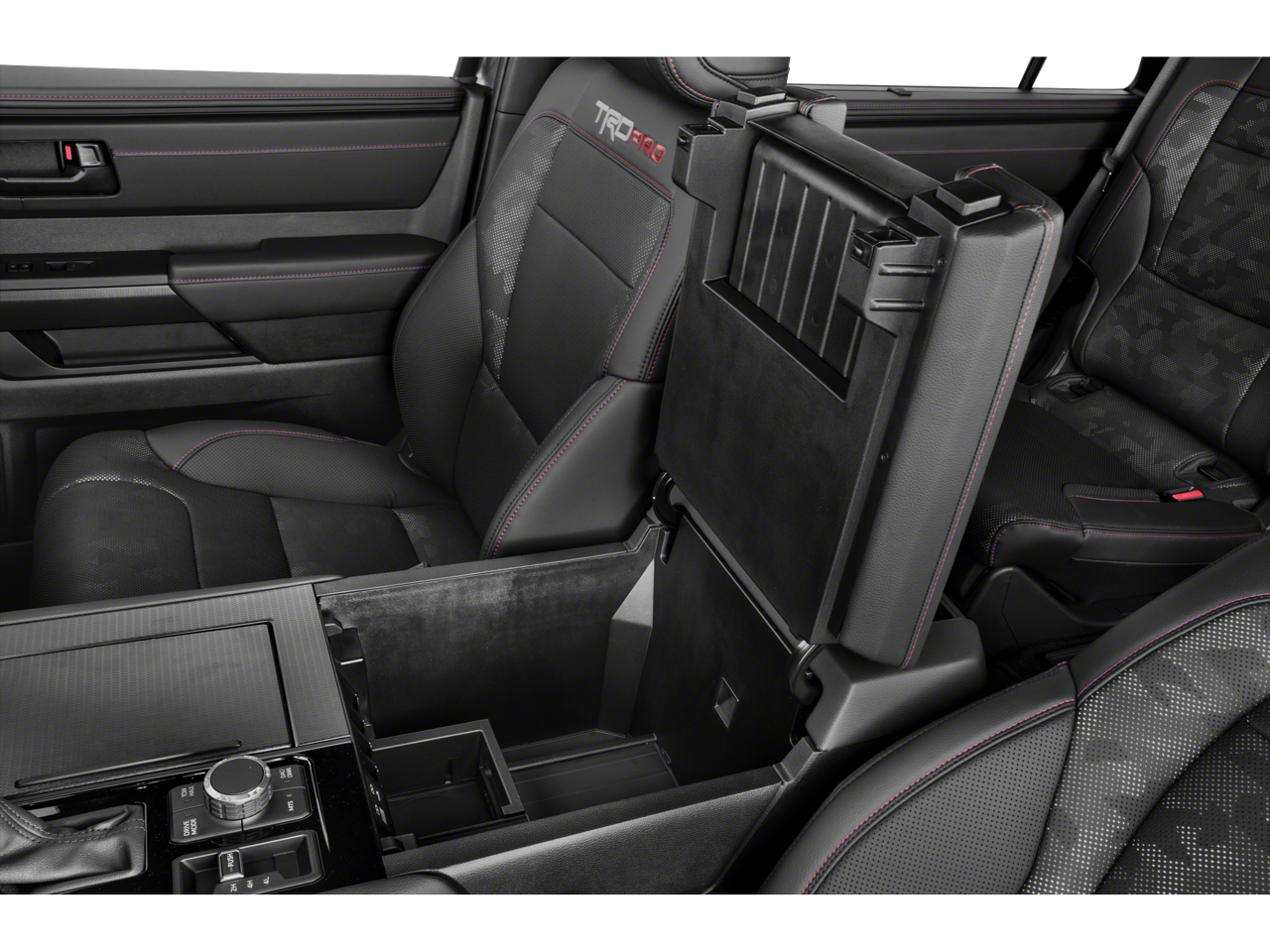 This 2024 Toyota Sequoia TRD Pro in Black comes with the following features: V6 Hybrid 10-Speed Automatic 4WD Tow Technology Package, V6 Hybrid, 10-Speed Automatic, 4WD, ABS brakes, Active Cruise Control, Alloy wheels, Compass, Electronic Stability Control, Front dual zone A/C, Heated & Ventilated Front Seats, Heated door mirrors, Heated front seats, Illuminated entry, Low tire pressure warning, Navigation System, Power moonroof, Remote keyless entry, Traction control, 14 Speakers, 3.31 Axle Ratio, 3rd row seats: split-bench, 4-Wheel Disc Brakes, Air Conditioning, AM/FM radio: SiriusXM, Anti-whiplash front head restraints, Apple CarPlay/Android Auto, Auto High-beam Headlights, Auto-dimming door mirrors, Auto-dimming Rear-View mirror, Automatic temperature control, Brake assist, Bumpers: body-color, Cast Aluminum Step & Step Cover, Delay-off headlights, Driver door bin, Driver vanity mirror, Dual front impact airbags, Dual front side impact airbags, Emergency communication system: Safety Connect (10-year trial), Exterior Parking Camera Rear, Front anti-roll bar, Front Bucket Seats, Front Center Armrest w/Storage, Front fog lights, Front reading lights, Front wheel independent suspension, Fully automatic headlights, Garage door transmitter: HomeLink, Headlight cleaning, Heated steering wheel, JBL 14 Speakers, Knee airbag, Leather Shift Knob, Leather steering wheel, Memory seat, Navigation system: Drive Connect (1 year trial) includes Cloud Navigation with real time traffic and Google POI, Occupant sensing airbag, Outside temperature display, Overhead airbag, Overhead console, Panic alarm, Passenger door bin, Passenger vanity mirror, Power door mirrors, Power driver seat, Power passenger seat, Power steering, Power windows, Premium audio system: JBL, Pro High Grade Full LED Headlamps, Radio: JBL Premium Audio System, Rear air conditioning, Rear reading lights, Rear seat center armrest, Rear window defroster, Rear window wiper, Reclining 3rd row seat, Security system, Speed control, Speed-sensing steering, Split folding rear seat, Spoiler, Sport steering wheel, Steering wheel mounted audio controls, Tachometer, Telescoping steering wheel, Tilt steering wheel, TRD Pro Leather-Trimmed Steering Wheel, TRD Pro LED Light Bar, TRD Pro SofTex Seat Trim, TRD Pro Under Cover & Protector, Trip computer, Turn signal indicator mirrors, Variably intermittent wipers, Ventilated front seats, Voltmeter, Wheels: 20 Machined-Finish Alloy, and Wireless Smartphone Charger.