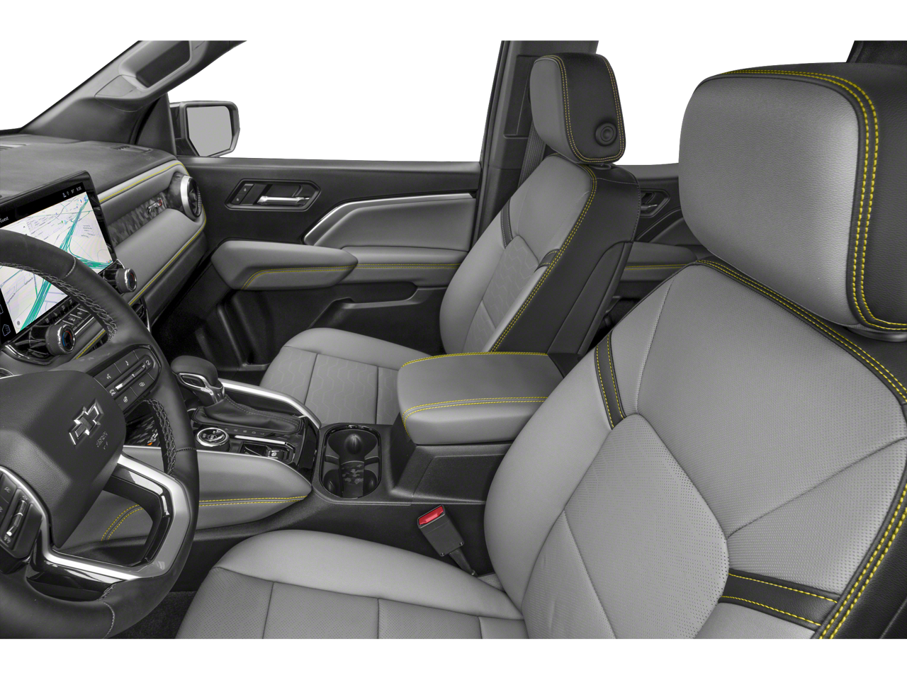 The Colorado ZR2's striking exterior features bold, aggressive styling that commands attention. The Graphite and Oxide Gold Aluminum wheels, combined with the rugged off-road-ready design, give this truck a commanding presence on the road. Inside, the premium leather-appointed seating, heated and ventilated front seats, and Bose Premium Audio System create a refined and comfortable cabin, perfect for long journeys or daily commutes.