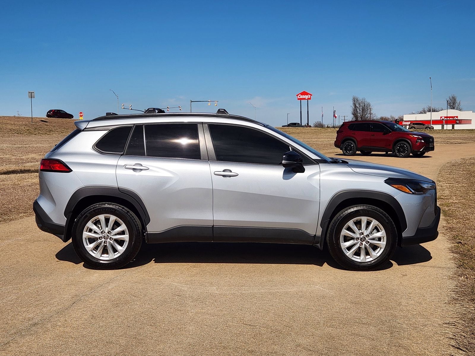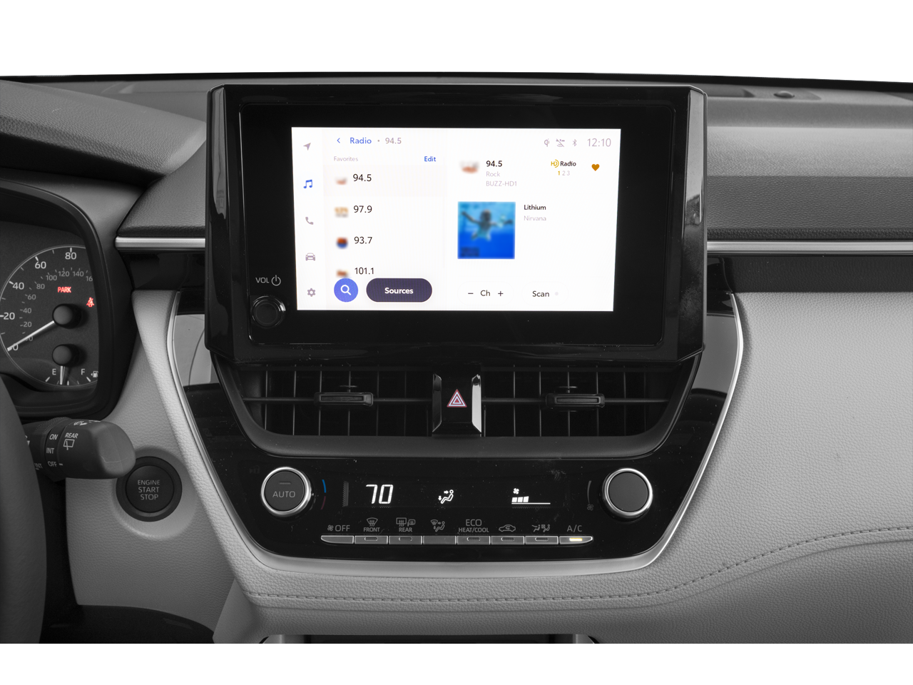 This 2025 Toyota Corolla Cross comes nicely equipped with 17 Silver Alloy Wheels, 4-Wheel Disc Brakes, 6 Speakers, ABS brakes, Air Conditioning, Alloy wheels, AM/FM radio: SiriusXM, Auto High-beam Headlights, Automatic temperature control, Brake assist, Bumpers: body-color, Carpet Floor Mat/Cargo Mat, Cross Bars, Delay-off headlights, Driver door bin, Driver vanity mirror, Dual front impact airbags, Dual front side impact airbags, Electronic Stability Control, Emergency communication system: Safety Connect (10-year trial), Exterior Parking Camera Rear, Fabric Seat Trim, Frameless HomeLink Mirror, Front anti-roll bar, Front Bucket Seats, Front Center Armrest, Front reading lights, Front wheel independent suspension, Fully automatic headlights, Heated door mirrors, Illuminated entry, Knee airbag, Leather steering wheel, Low tire pressure warning, Mudguards, Occupant sensing airbag, Outside temperature display, Overhead airbag, Panic alarm, Passenger door bin, Passenger vanity mirror, Power door mirrors, Power steering, Power windows, Radio data system, Radio: 8 Toyota Audio Multimedia with 6 Speakers, Rear anti-roll bar, Rear Bumper Protector, Rear side impact airbag, Rear window defroster, Rear window wiper, Remote keyless entry, Speed control, Split folding rear seat, Spoiler, Steering wheel mounted audio controls, Tachometer, Telescoping steering wheel, Tilt steering wheel, Traction control, Trip computer, Turn signal indicator mirrors, and Variably intermittent wipers.