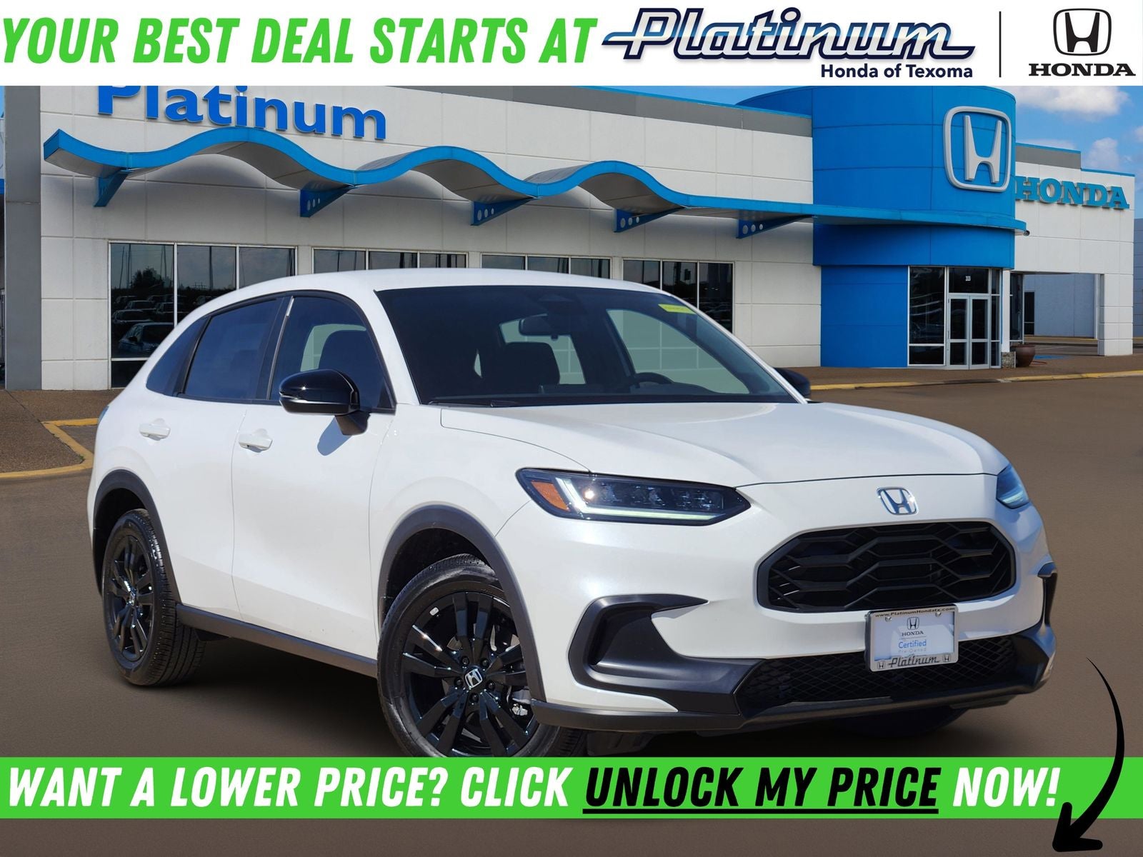 This 2026 Honda HR-V Sport in White comes with the following features: 2.0L I4 DOHC 16V i-VTEC CVT FWD 4-Wheel Disc Brakes, 6 Speakers, ABS brakes, Adaptive Cruise Control: Adaptive Cruise Control (ACC) with Low-Speed Follow, Air Conditioning, Alloy wheels, AM/FM radio, Apple CarPlay/Android Auto, Auto High-beam Headlights, Automatic temperature control, Blind Spot Information (BSI) System warning, Brake assist, Bumpers: body-color, Cloth Seat Trim, Compass, Delay-off headlights, Driver door bin, Driver vanity mirror, Dual front impact airbags, Dual front side impact airbags, Electronic Stability Control, Exterior Parking Camera Rear, Four wheel independent suspension, Front anti-roll bar, Front Bucket Seats, Front Center Armrest, Front reading lights, Fully automatic headlights, Heated door mirrors, Heated Front Bucket Seats, Heated front seats, Illuminated entry, Knee airbag, Low tire pressure warning, Occupant sensing airbag, Outside temperature display, Overhead airbag, Panic alarm, Passenger door bin, Passenger vanity mirror, Power door mirrors, Power steering, Power windows, Radio data system, Radio: 180-Watt Audio System with 6 Speakers, Rear anti-roll bar, Rear reading lights, Rear side impact airbag, Rear window defroster, Rear window wiper, Remote keyless entry, Security system, Speed control, Speed-sensing steering, Split folding rear seat, Spoiler, Steering wheel mounted audio controls, Tachometer, Telescoping steering wheel, Tilt steering wheel, Traction control, Trip computer, Turn signal indicator mirrors, Variably intermittent wipers, and Wheels: 18 Gloss Black Alloy. 26/32 City/Highway MPG